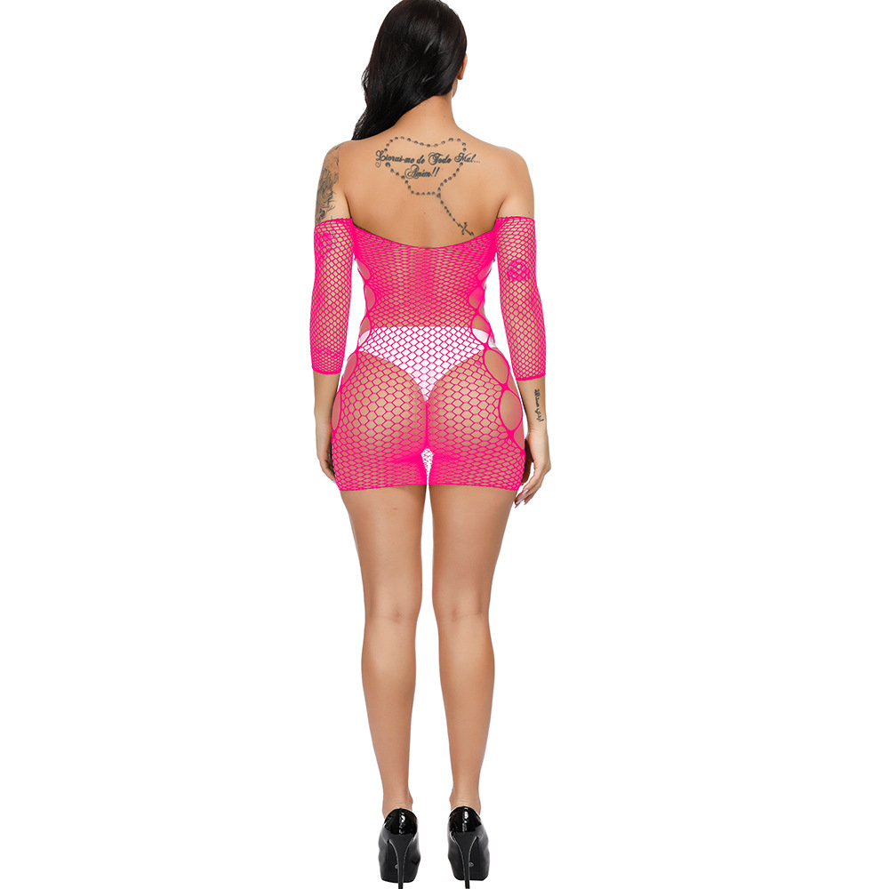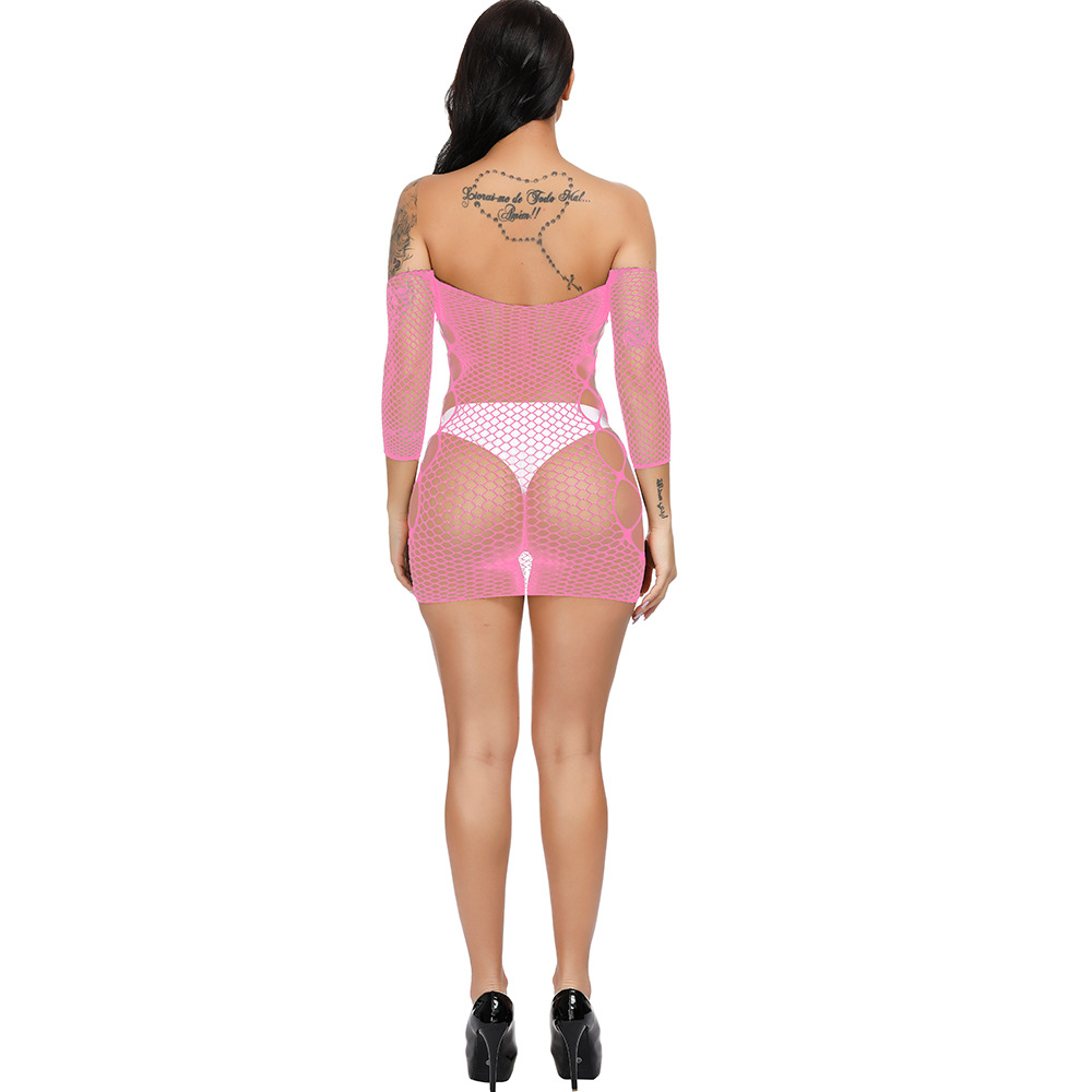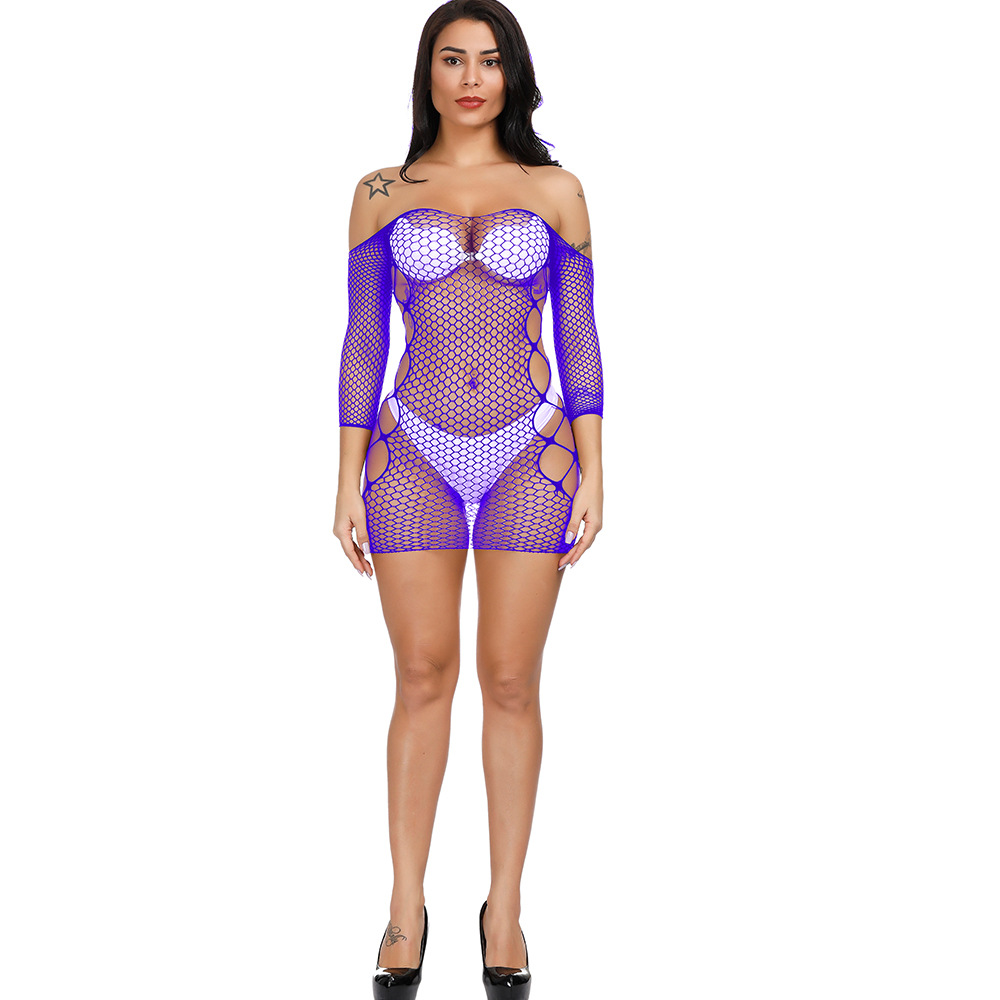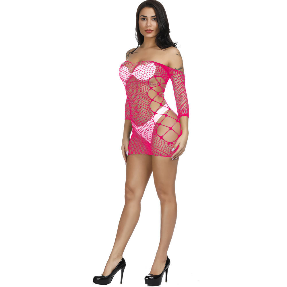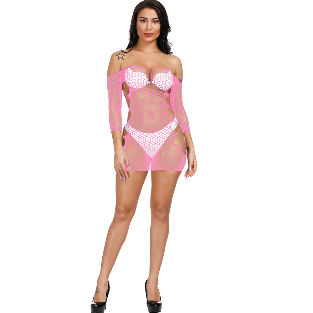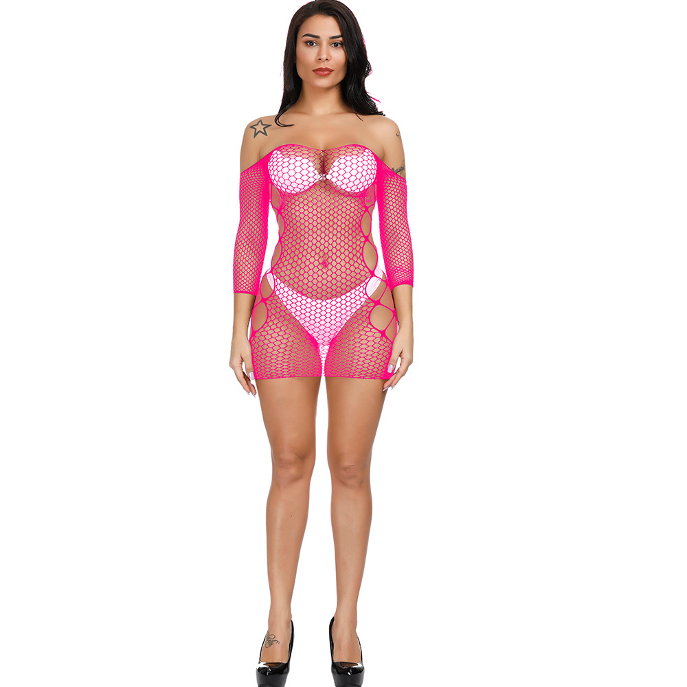 This sexy lingerie set features a European and American-inspired jacquard sling, a provocative mesh skirt, net stockings, and hollow transparent tights. It offers a daring and alluring look, emphasizing sensuality and confidence through its intricate design and revealing silhouette. The unique combination of textures and patterns creates a visually captivating and unforgettable experience.