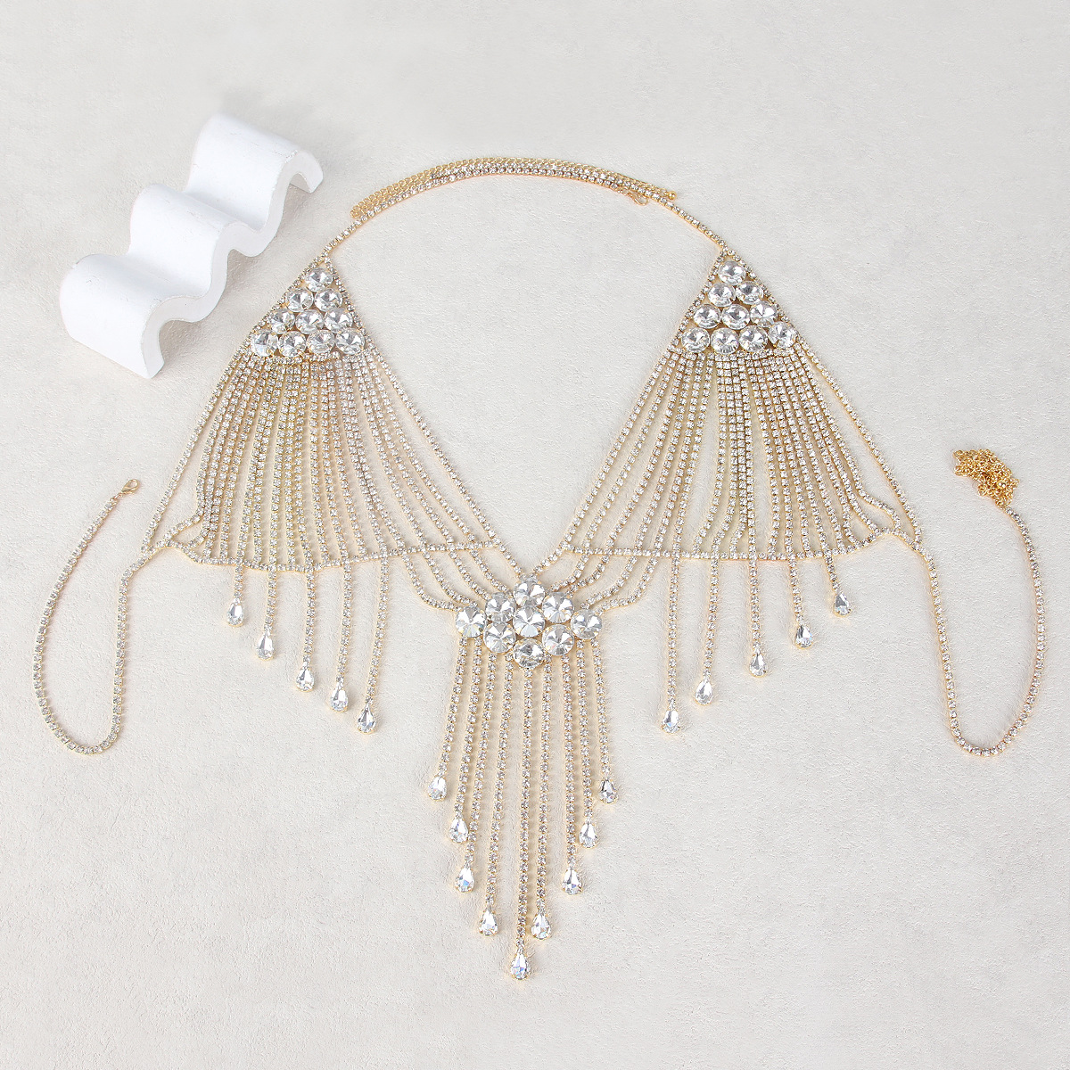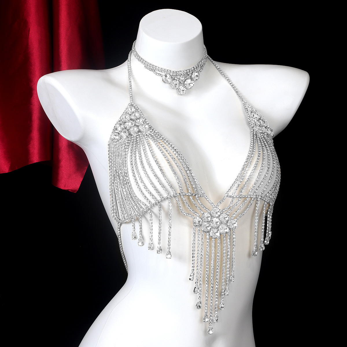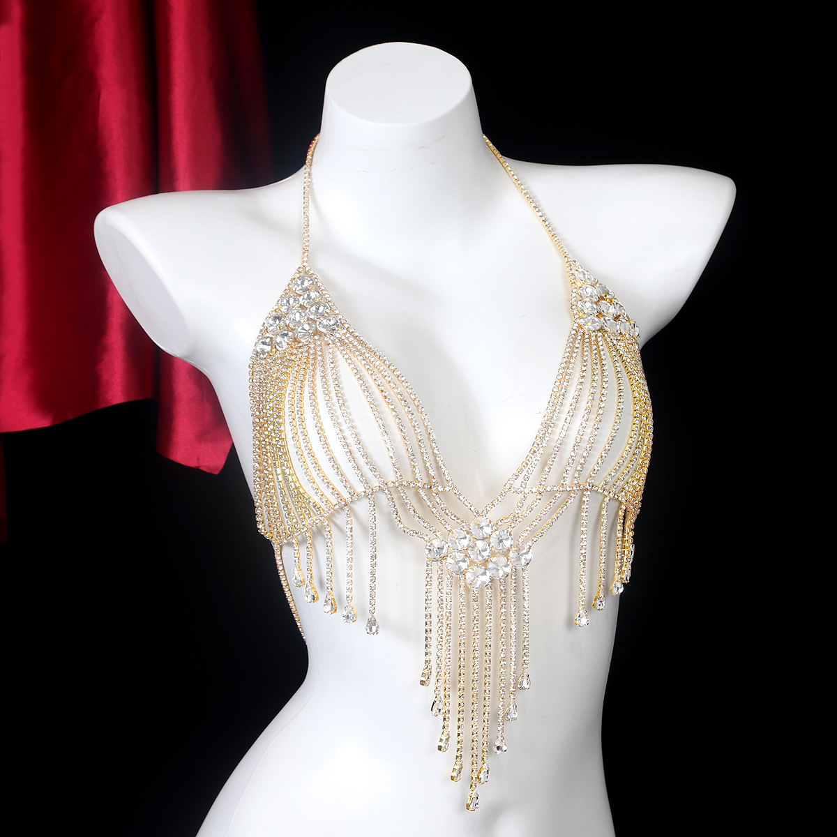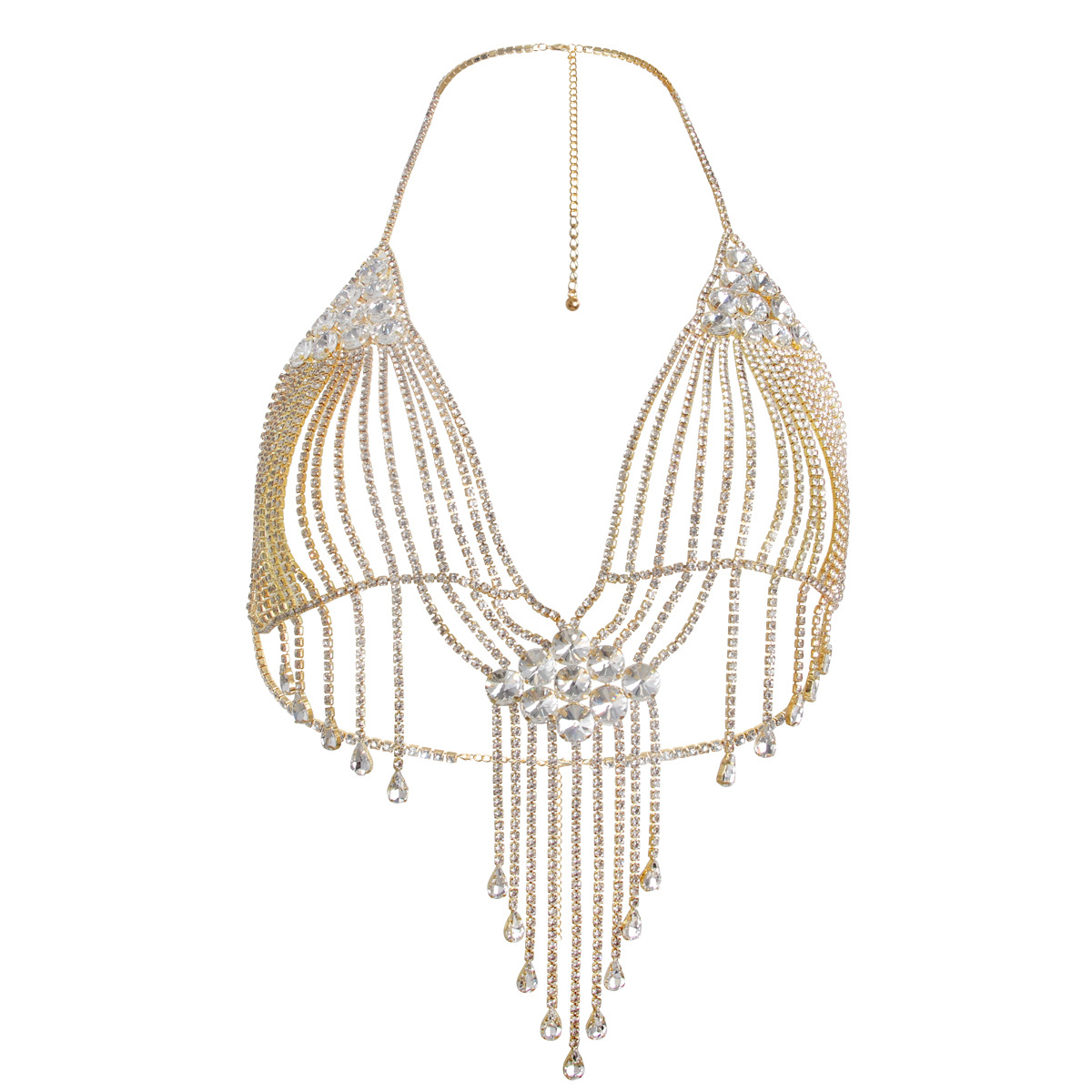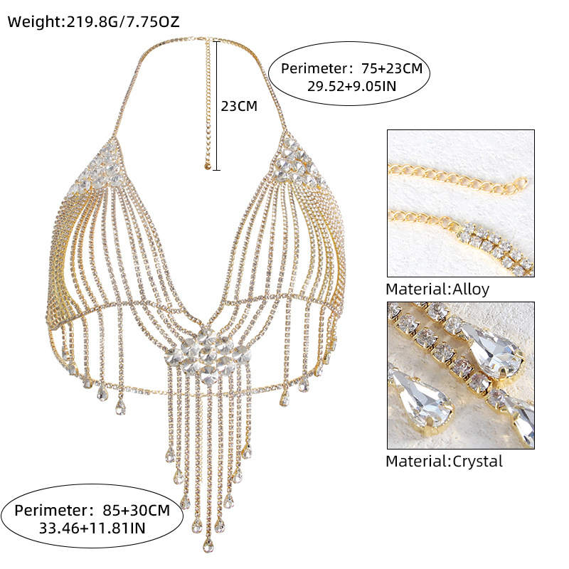 Perfect for stage shows, special events, or simply adding a touch of drama to your everyday look, this chest chain is designed to turn heads. The flowing rhinestone tassels add movement and dimension, creating a dynamic and eye-catching effect. Whether you’re a performer, a fashion enthusiast, or simply someone who loves to stand out from the crowd, this body chain will elevate your style to new heights.