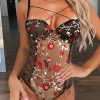 Lace Mesh Embroidery Jumpsuit: European American Strap Bodysuit