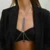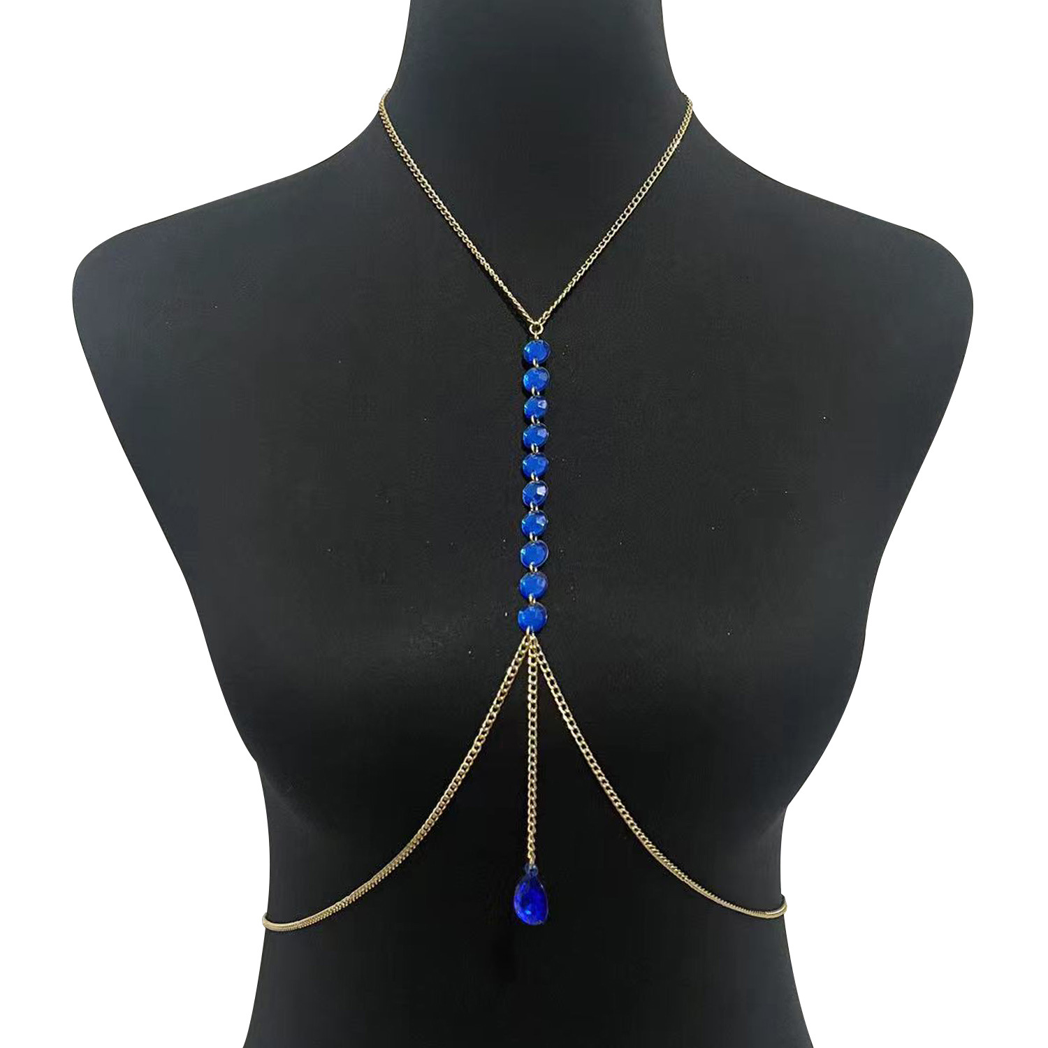 A captivating blue gemstone pendant chest chain designed to accentuate your décolletage. This sexy body jewelry adds a touch of European and American glamour to your bikini or outfit, offering a unique and alluring statement piece.