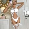 European and American sexy lingerie black sexy sling backless hollow open mesh one-piece jacquard G004