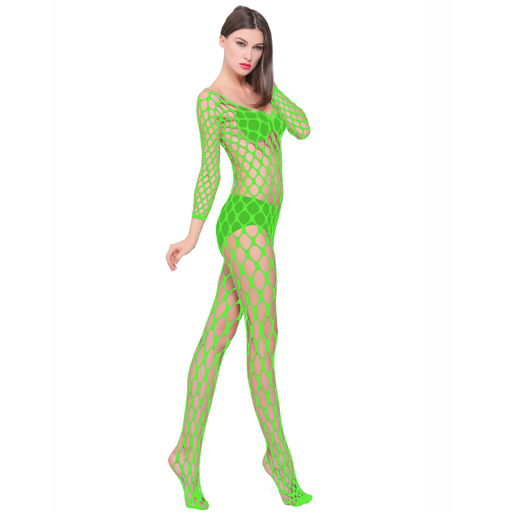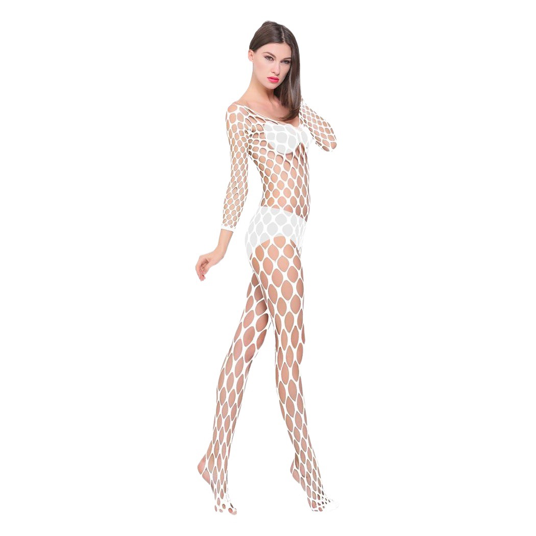 Sexy Mesh Lingerie Bodysuit: Long Sleeve Fishnet Stockings Open Crotch