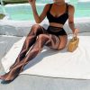 Sultry open-crotch jumpsuit featuring alluring lace-up detailing and net stockings. This lingerie piece offers a daring and provocative look, emphasizing curves and providing easy access. Its unique selling point is the combination of seductive design and functional convenience, promising a night of uninhibited passion.