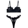 This three-piece set features a barely-there bra, a tantalizing G-string, and adjustable suspender straps that connect to the bra, creating a visually stunning and undeniably alluring effect. The see-through design leaves little to the imagination, offering a tantalizing glimpse of what lies beneath, while maintaining an air of sophisticated mystery.