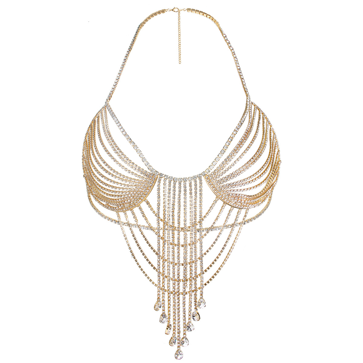 Exude confidence and allure with this European and American-inspired gold/silver-plated body chain. Featuring dazzling gemstones, this bra chain jewelry elevates your nightclub look with exaggerated, sexy style. A unique statement piece that accentuates your figure and commands attention.