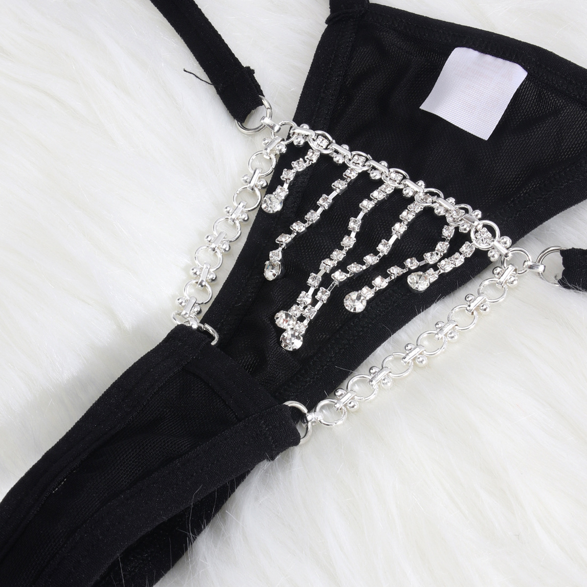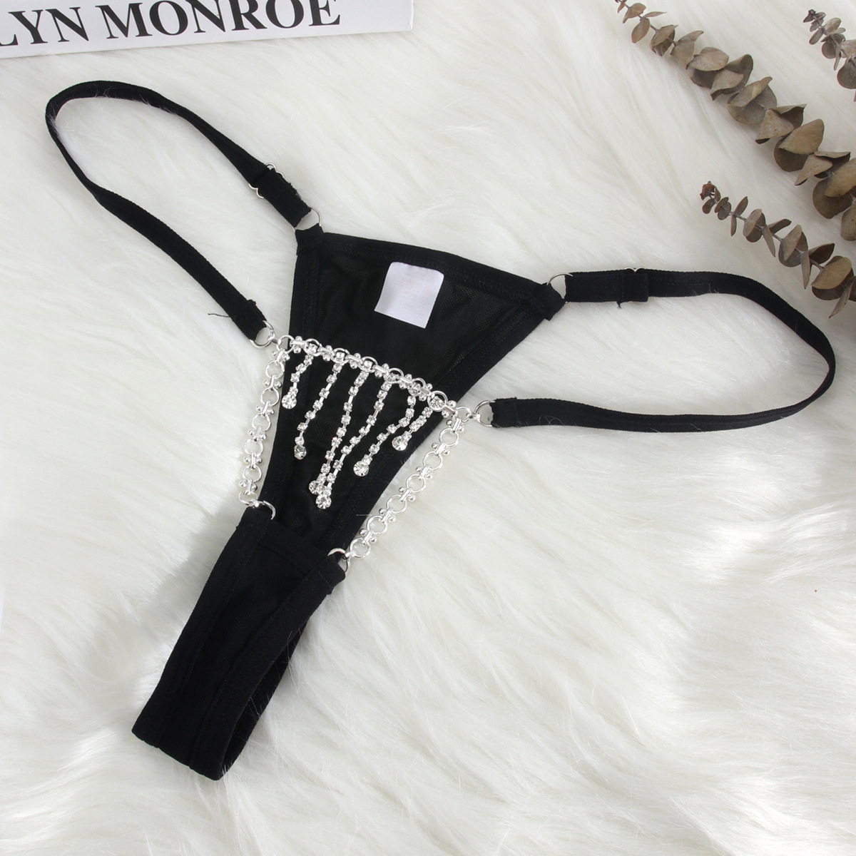 A sexy G-string body chain designed for confident women. Perfect for nightclubs, beaches, parties, and adding a daring touch to bikini wear. This accessory enhances your figure, offering a unique and playful statement piece that’s sure to turn heads.