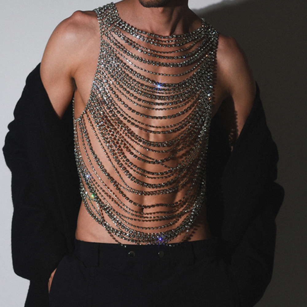 Inspired by European and American fashion trends, this exaggerated body chain features a meticulously crafted multi-layered design that drapes across your chest, creating a visually striking and undeniably masculine aesthetic. Each layer is carefully considered, offering a dynamic interplay of textures and lengths that catch the light and draw the eye.