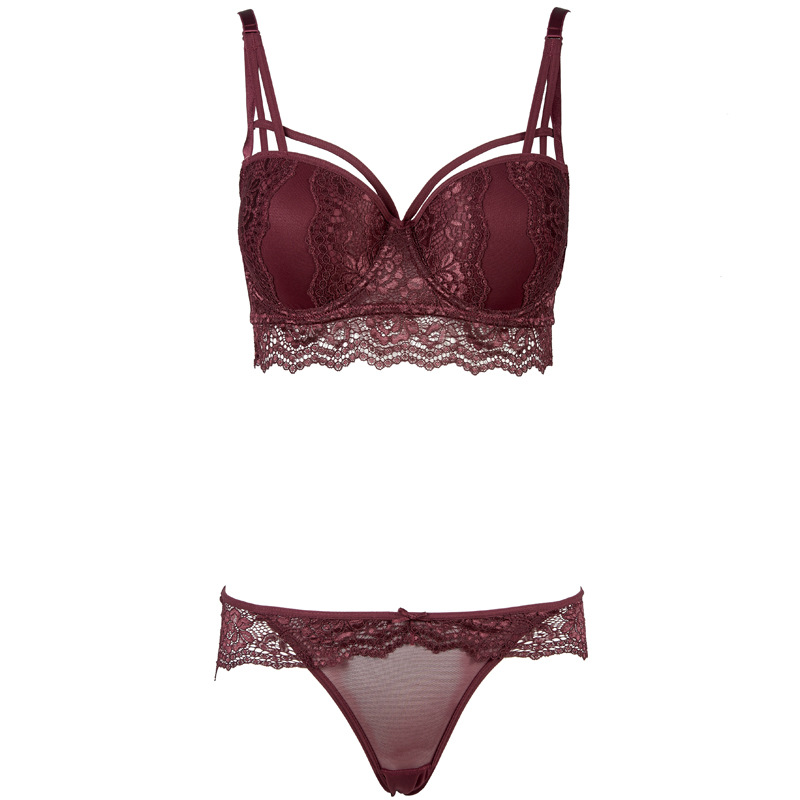 Lace Push-Up Bra Set for Women – Thin Top, Thick Bottom, Underwired Sexy Intimates