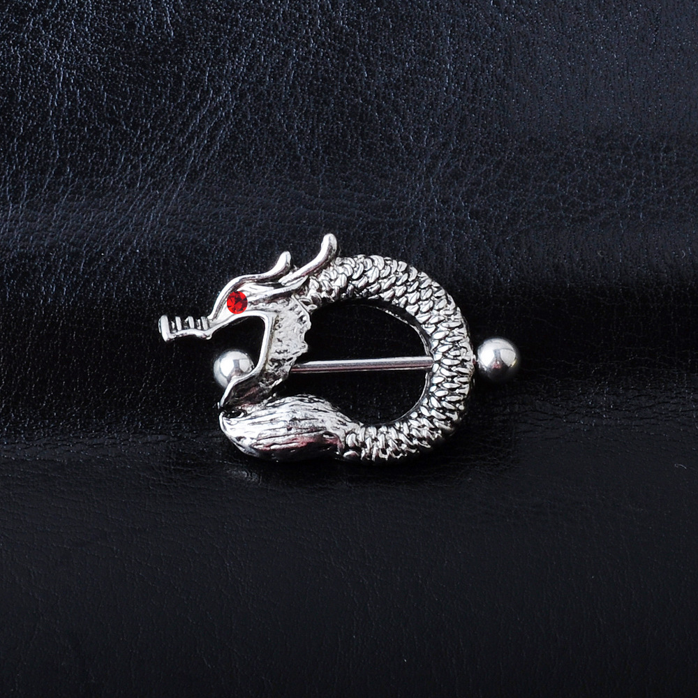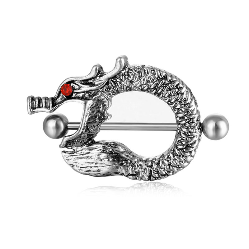 Fashion Puncture Jewelry Chinese Dragon Fake Breast Ring With Rod Breast Nail Belly Dance Jewelry Factory Direct Supply