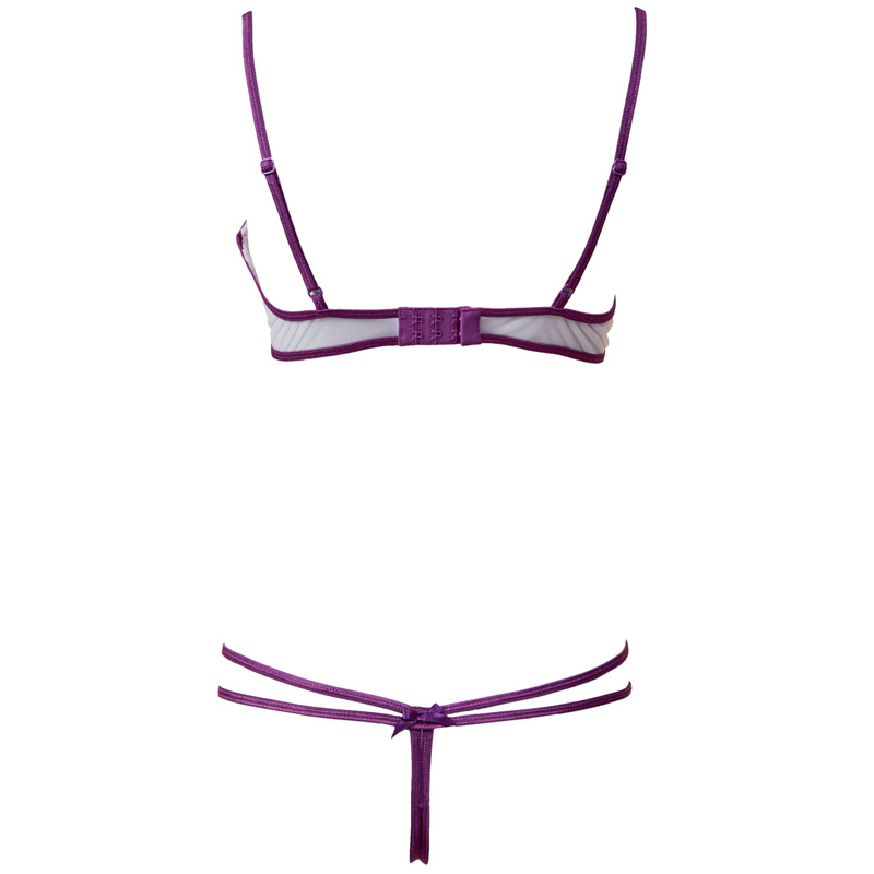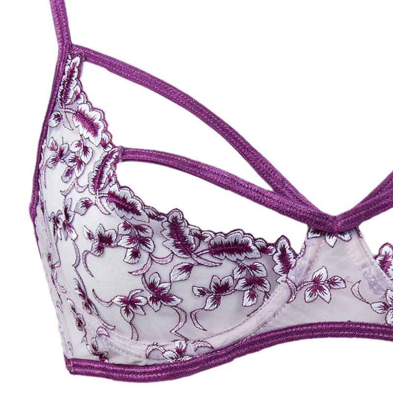 Dew Purple Embroidered Bra & Low Waist Pants Set with Steel Ring Flash Shoulder Strap