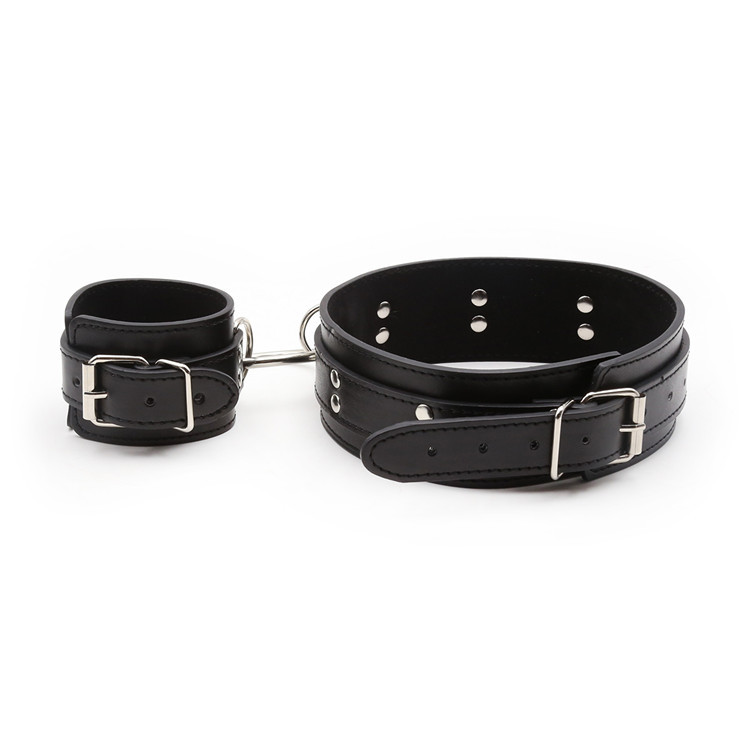 Flirting adult products, performance props, tied hands and legs, black leather, adjustable round buckle belt