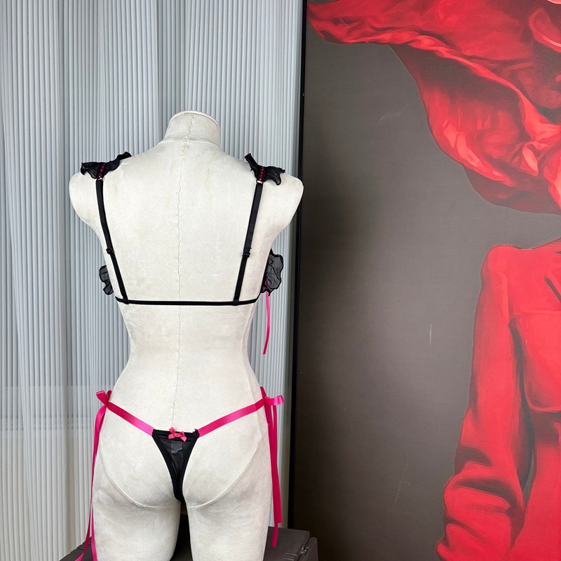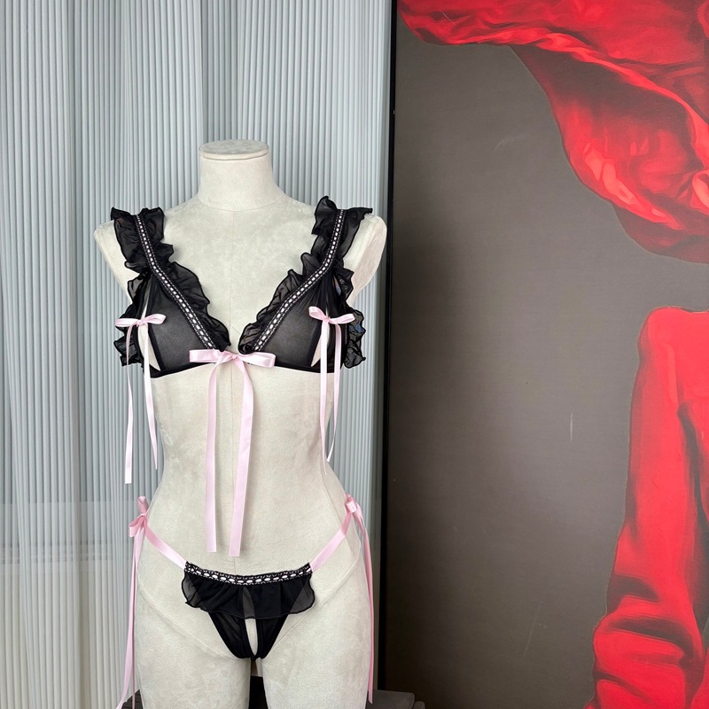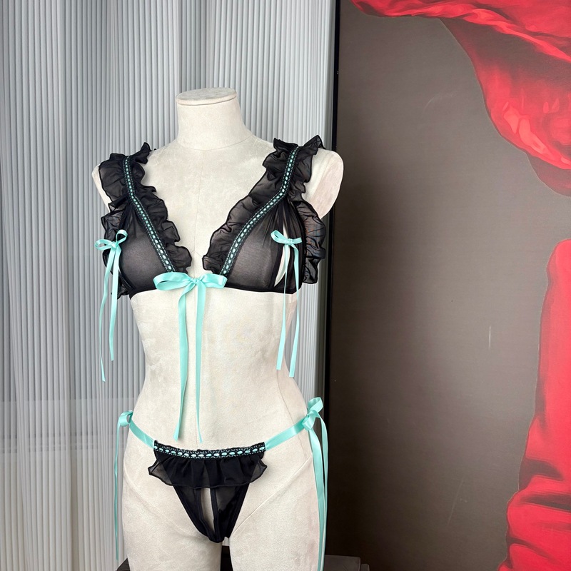 Sexy Bowknot Hollow Out Lingerie Set for Large Bust Women – Sheer Mesh Ruffled Babydoll