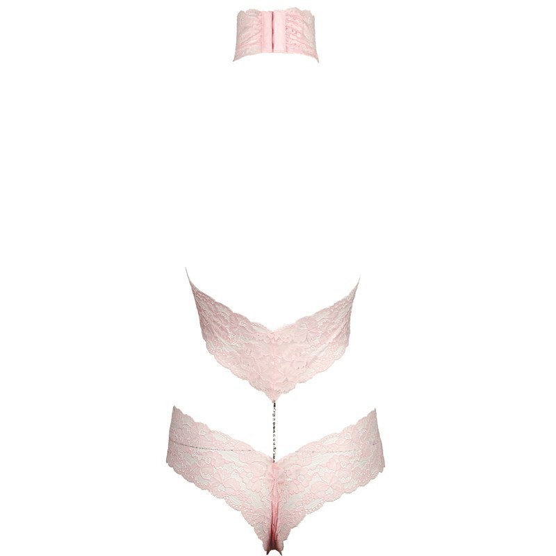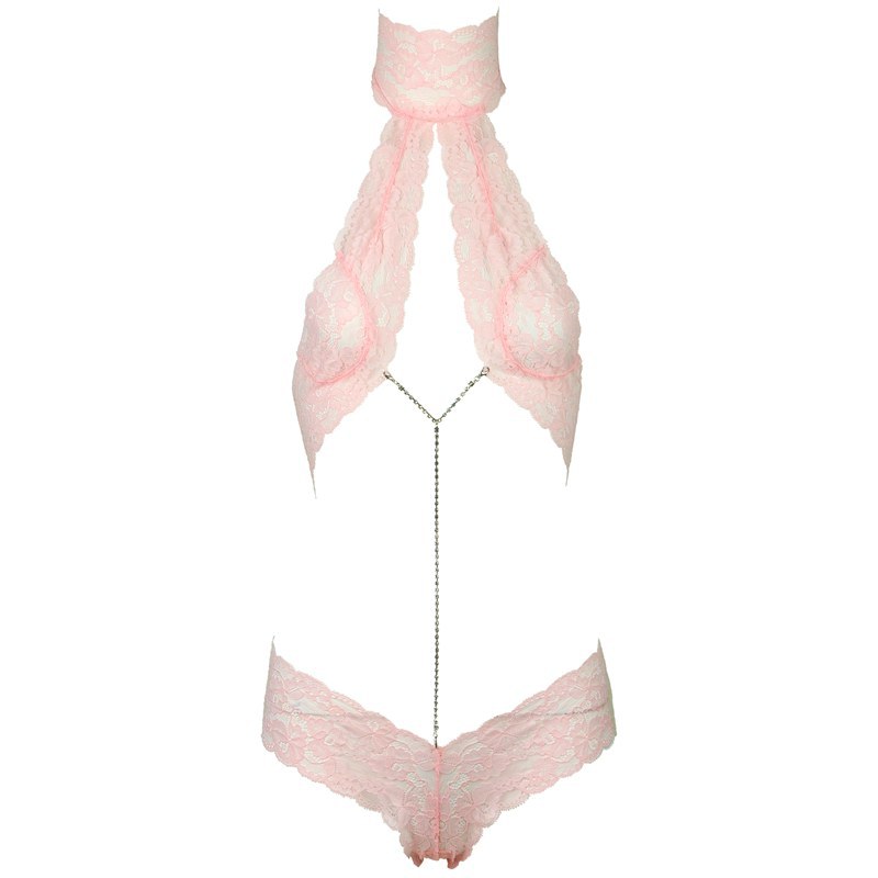 Sakura Pink Diamond Chain Lace Cutout Backless Jumpsuit for Women
