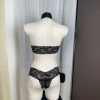 Black Lace Rhinestone Neckline Sexy Lingerie Top