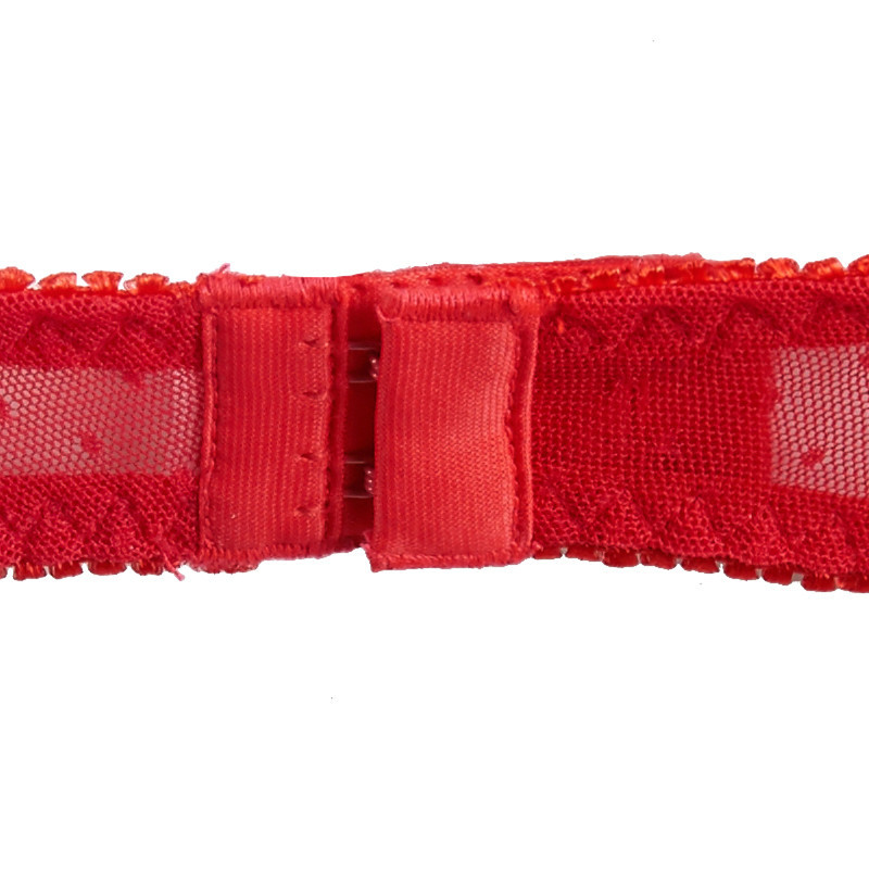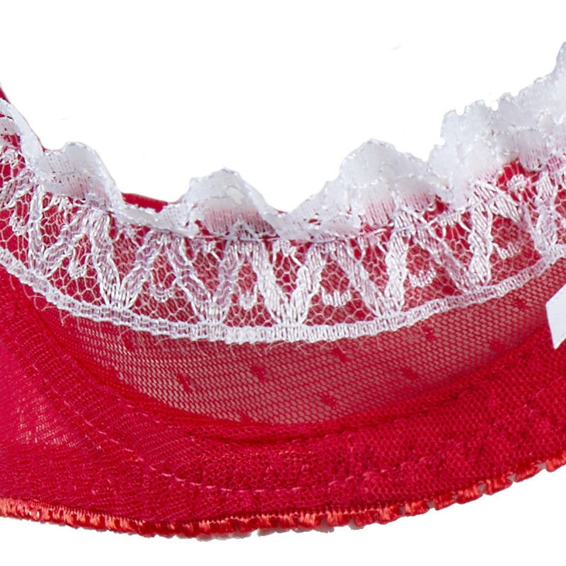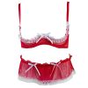 FQ2502 sexy lingerie exposed breast low waist thong set chest support set women’s sexy lace polka dot mesh fabric Red