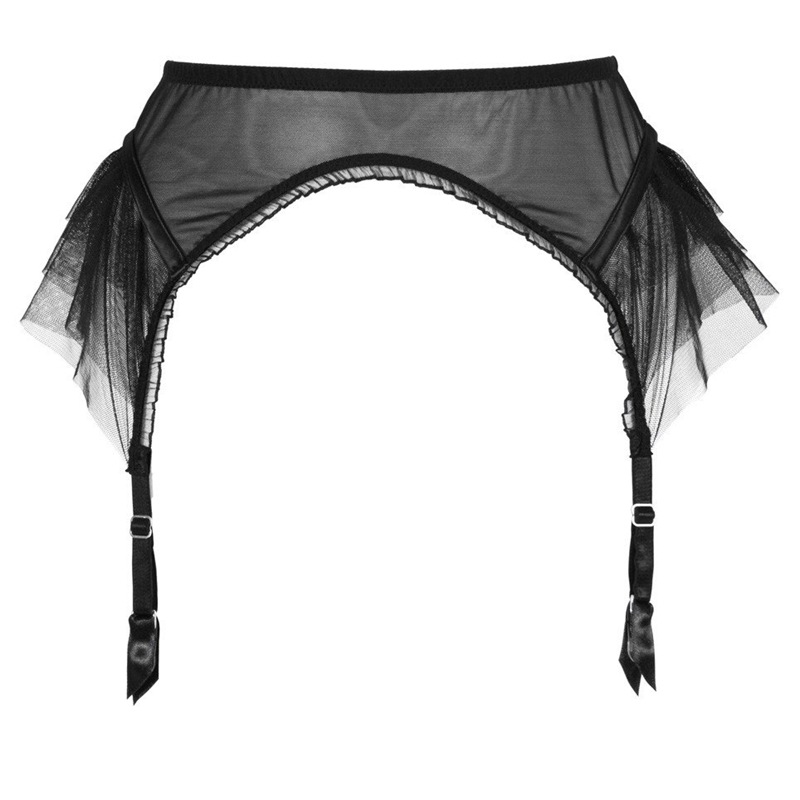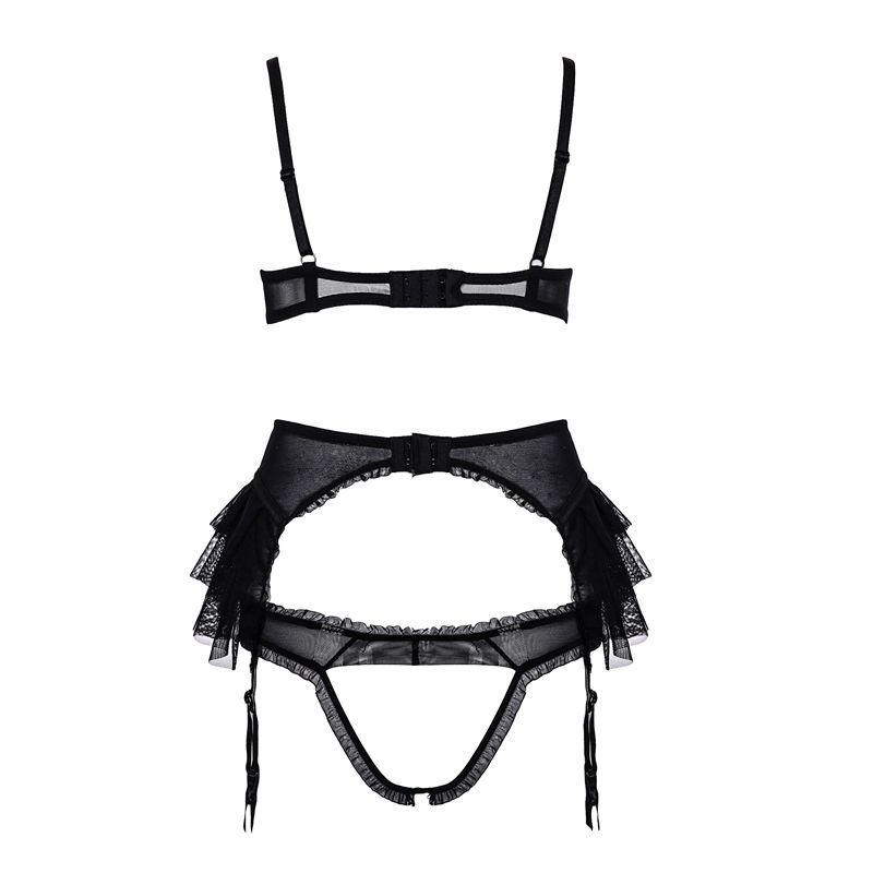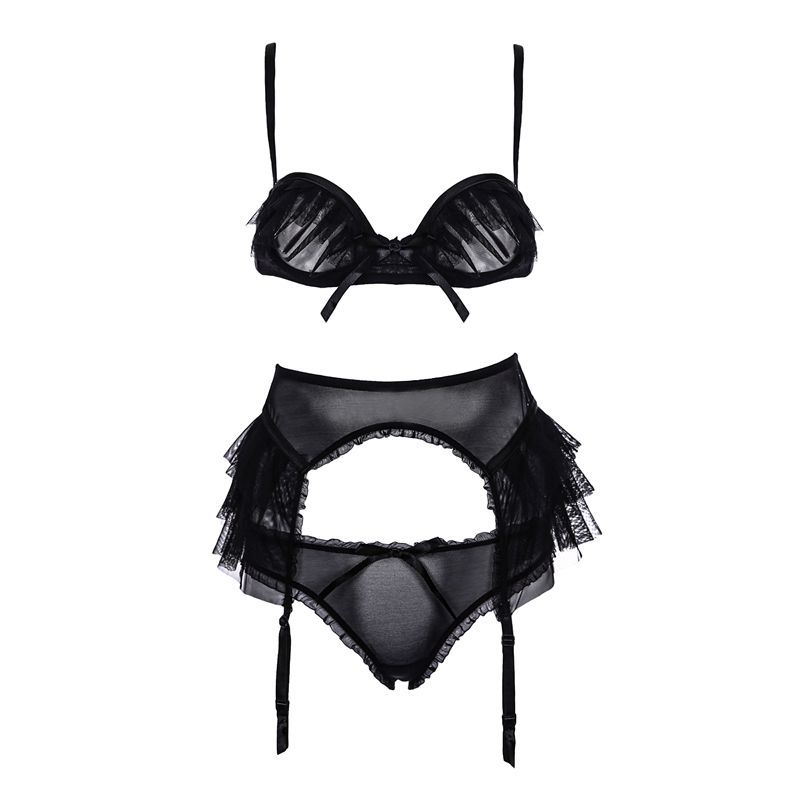 Sexy Black Tulle Vacuum Bra Set with Steel Ring, Transparent Lingerie, and Garter Accessories