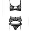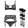 Women’s Dot Mesh Eyelash Lace Bra & Briefs Set with Heart Buckle