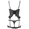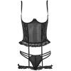 Black Lace Mesh Corset Socks Ring Open File Lingerie Set