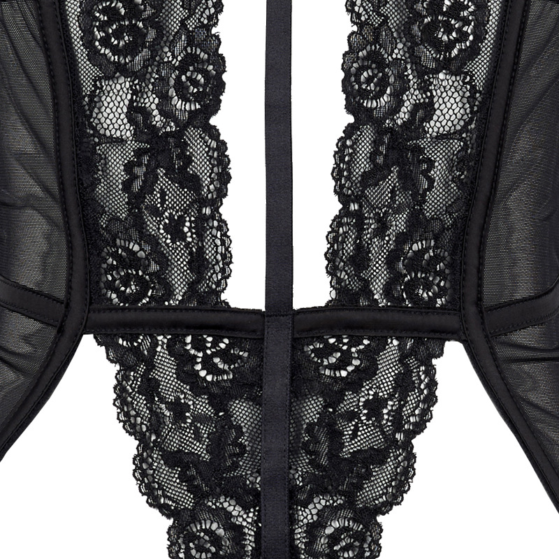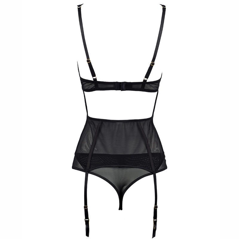 Russian Steel Ring Lace Hollow Backless Low Waist Sexy Briefs Bra