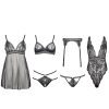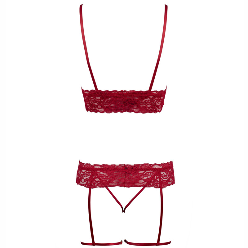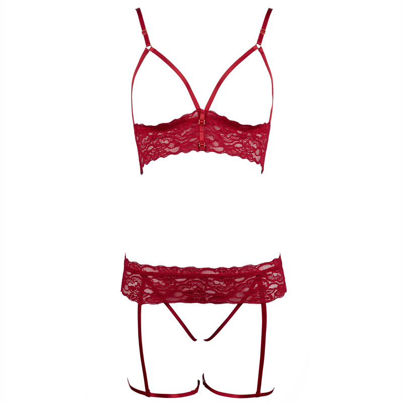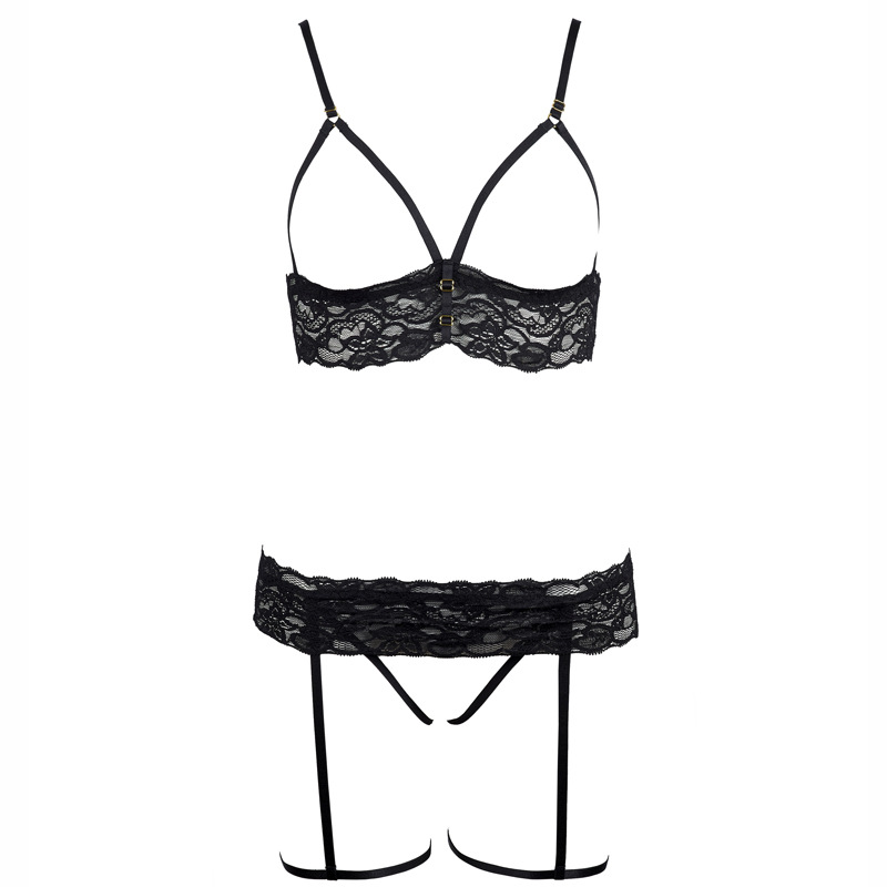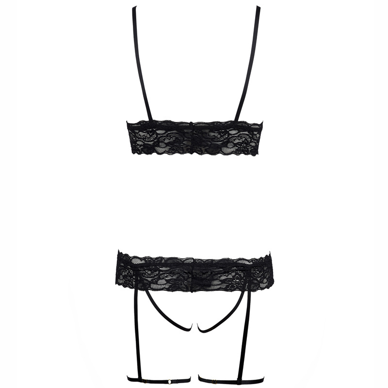 Sexy Lace Pajama Set with Open Front and Leg Garter