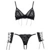 Women’s Black Diamond Mesh Lace Open Crotch T-Pants with Steel Ring Set