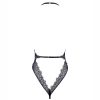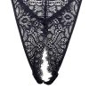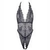 Women’s Black Elastic Lace Deep V Halter Backless Jumpsuit with Open Crotch
