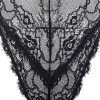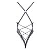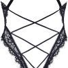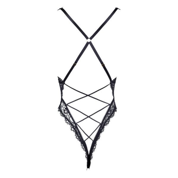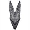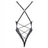 Black Elastic Lace Deep V Backless Bodysuit with Cross Straps