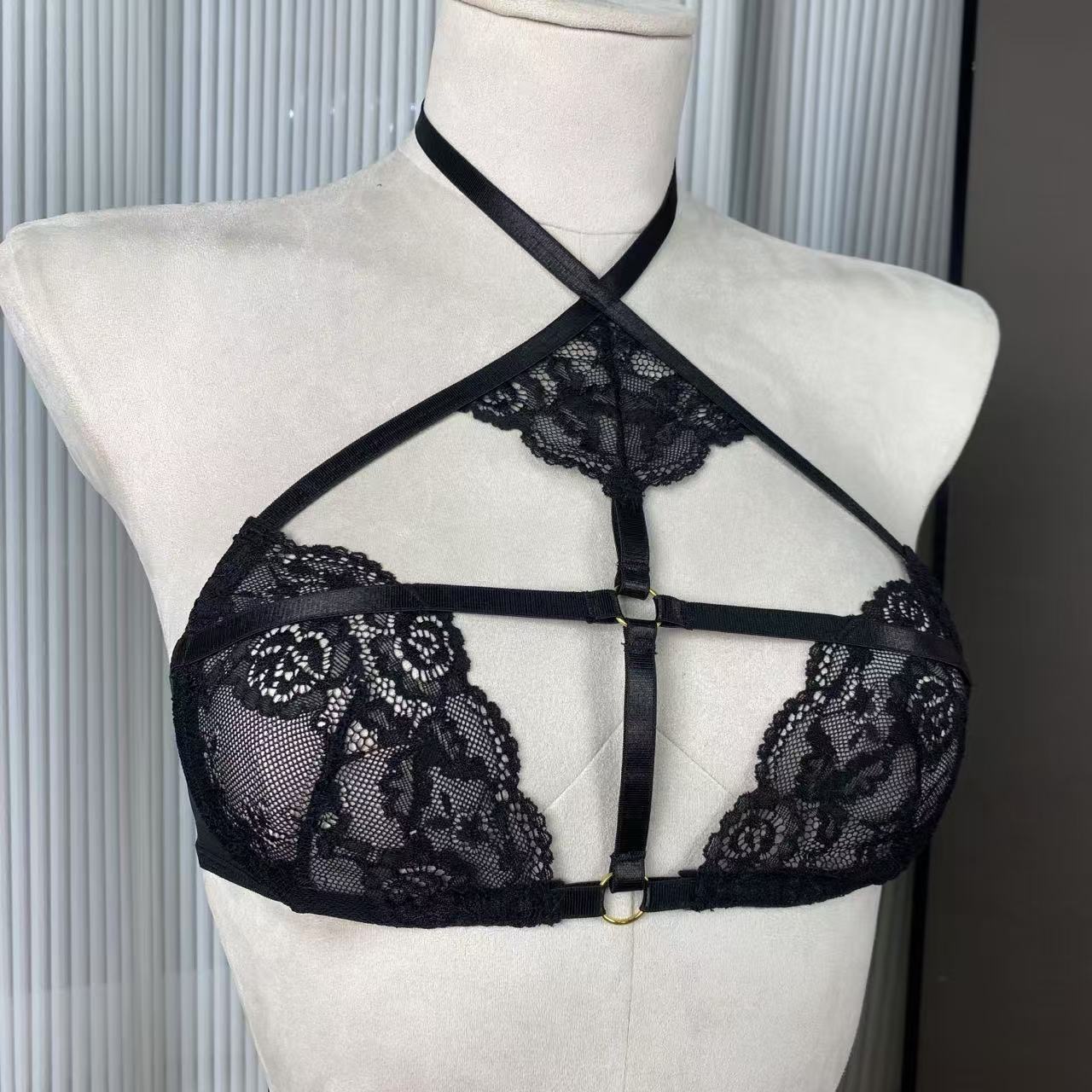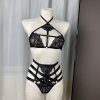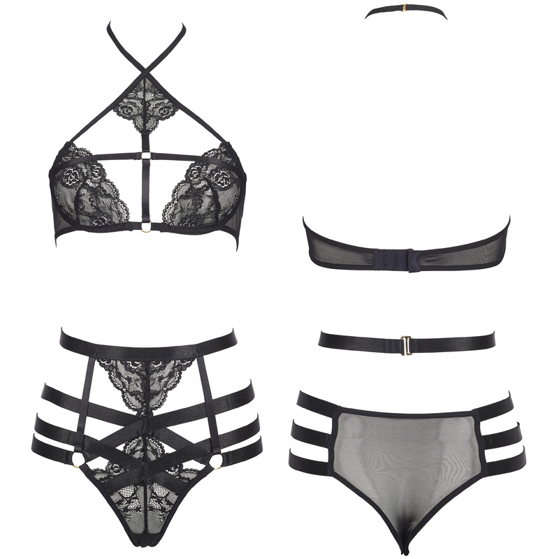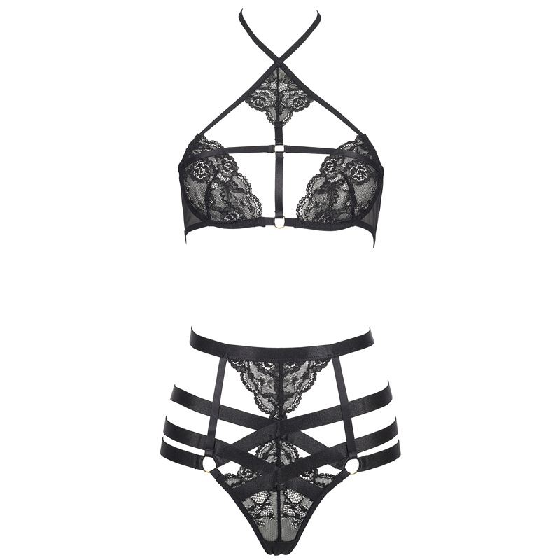 Black Lace Halterneck Light Support Bra & High Waist Panty Set for Women