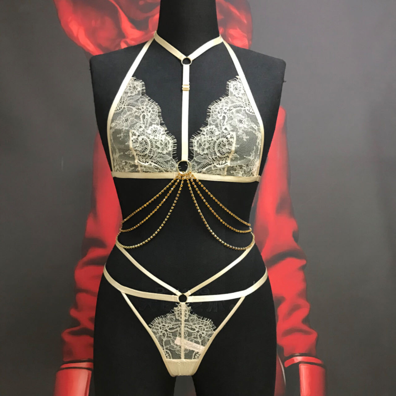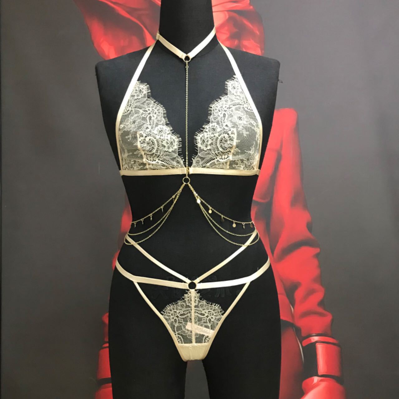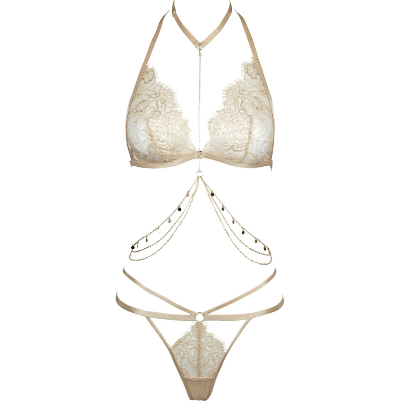 Sexy Lace Thong Set with Adjustable Chain and Diamond Accents