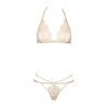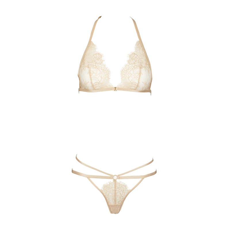 Gilded Eyelash Lace Champagne Triangle Cup Thong Lingerie Set