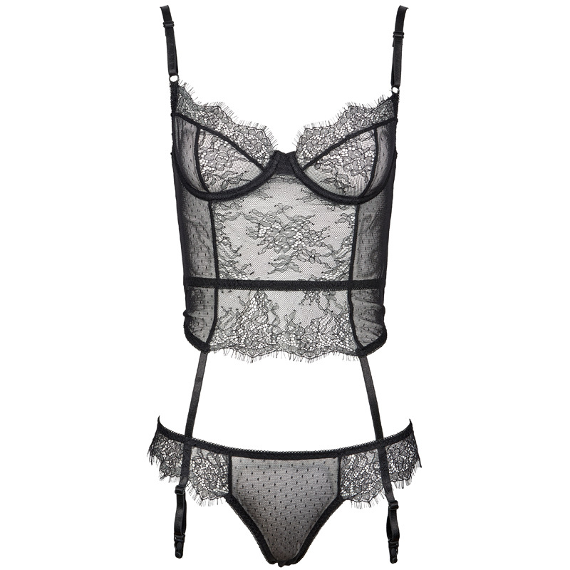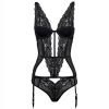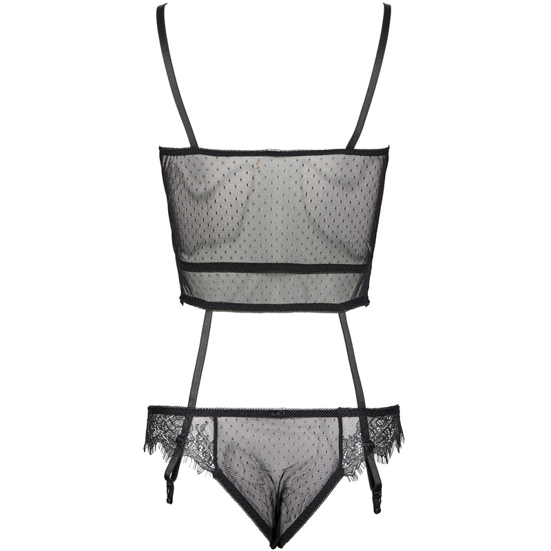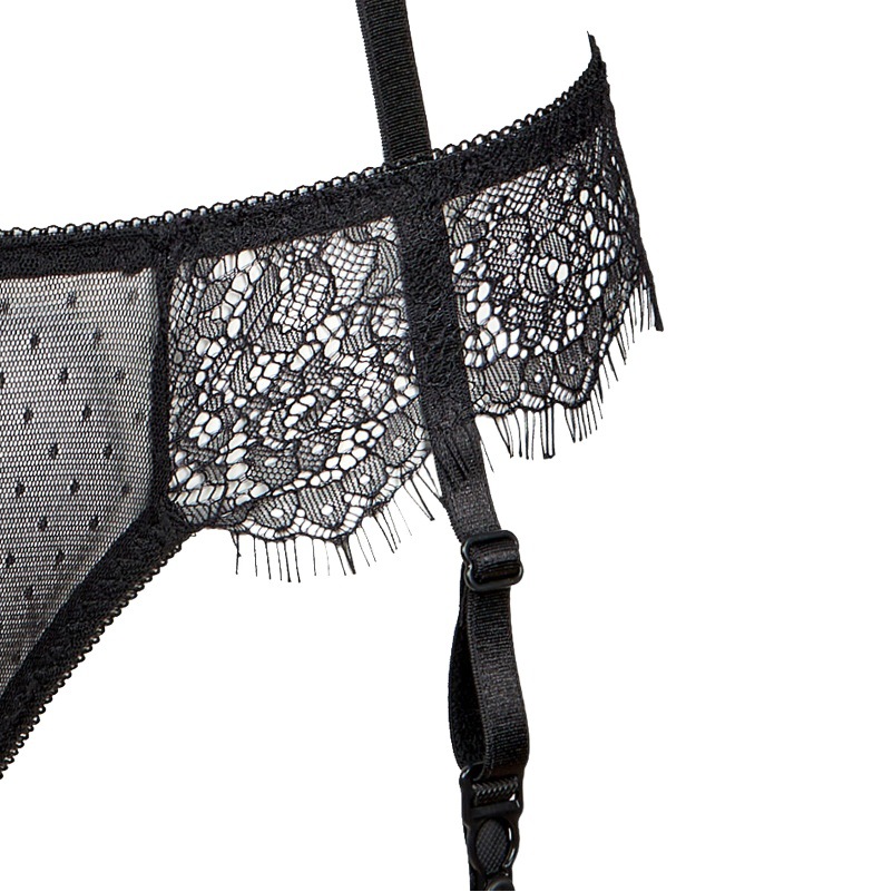 French Style Lace Perspective Sexy Bra Garter Belt Briefs Set