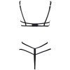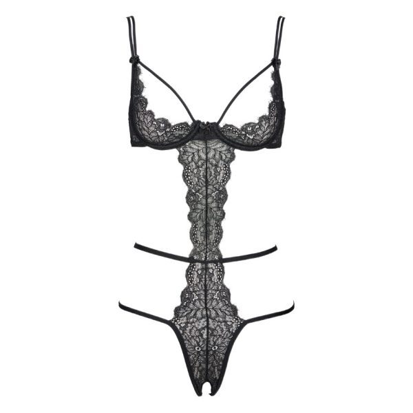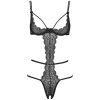 Black Eyelash Lace One-Piece Lingerie with Open Crotch and Steel Ring