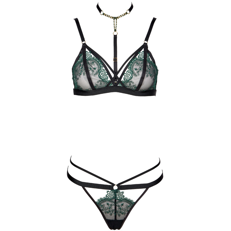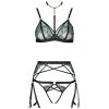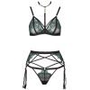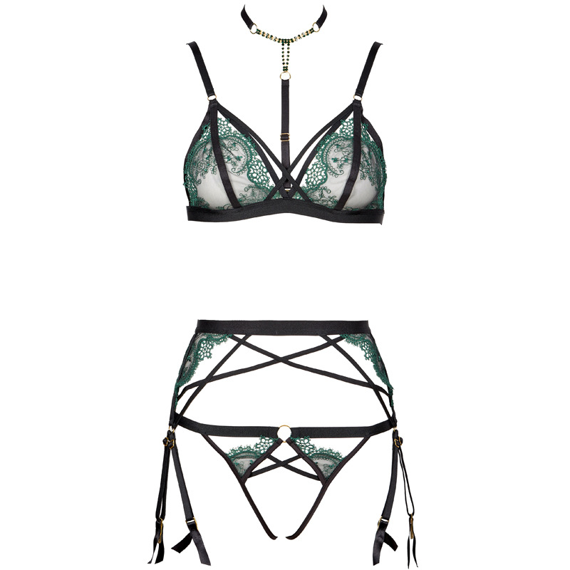 Sexy Embroidered Mesh Garter Set with Rhinestones & Open Crotch