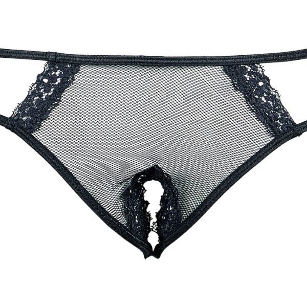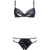 Sexy Black Lace Satin Bra & Panty Set – Hollow Design, Low Waist