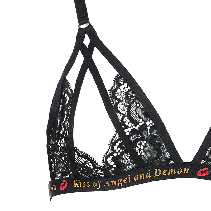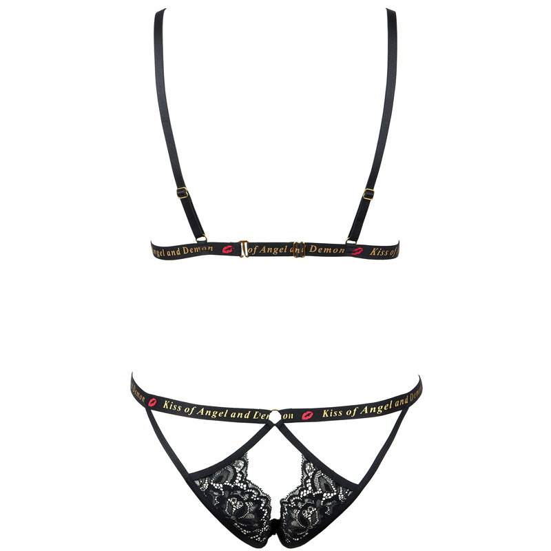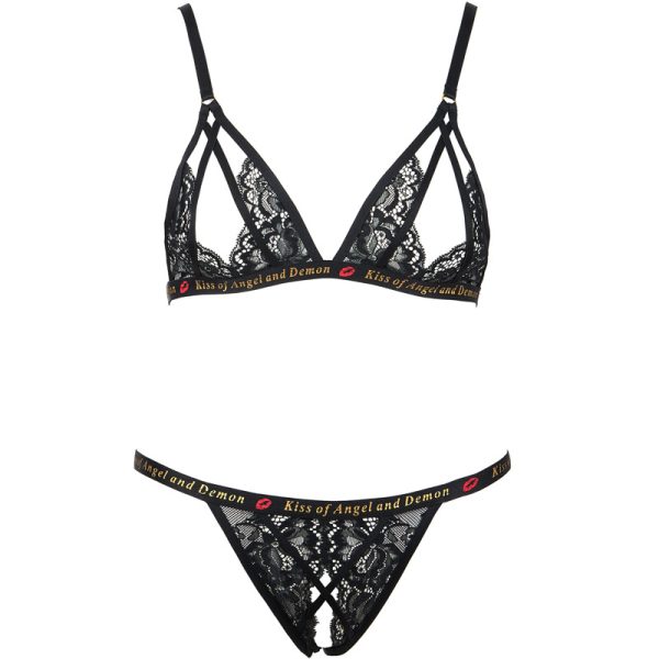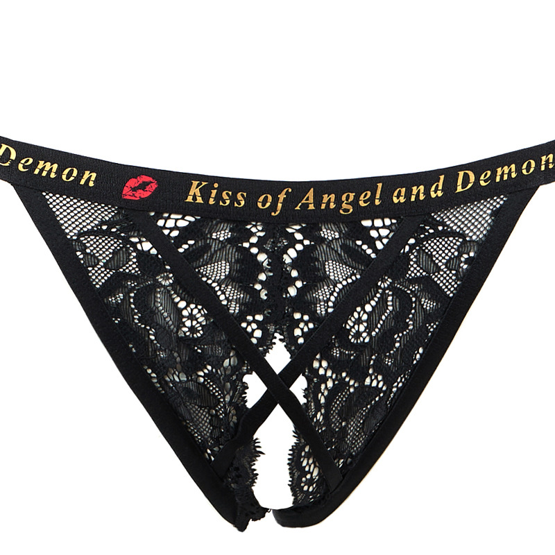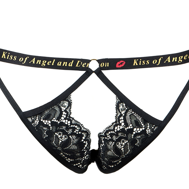 Sexy Black Lace Cross Strap Low Waist Women’s Underwear Set