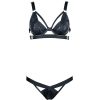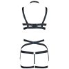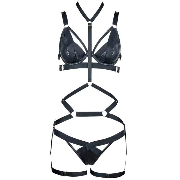 Matte Faux Leather Halter Bra & Thong Set with Adjustable Steel Ring and Leg Garter