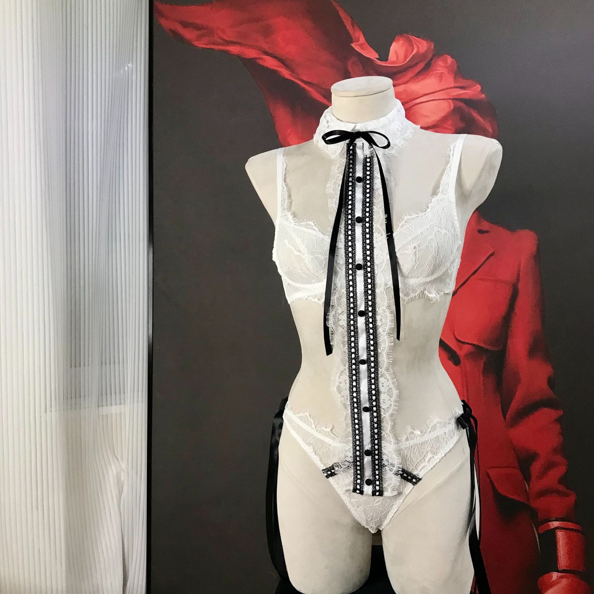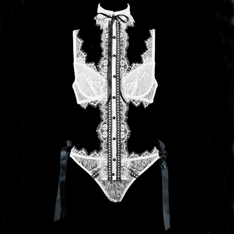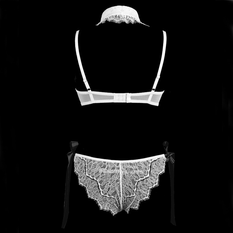 White Christmas Eyelash Lace Detachable Neck Collar Bra Set with Bow