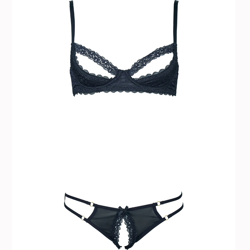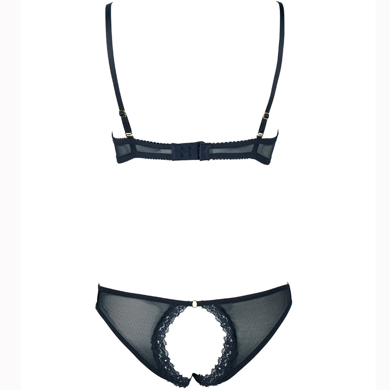 Women’s Lace Trim Mesh Low-Rise Exfoliation Bra & Open Hip Panty Set