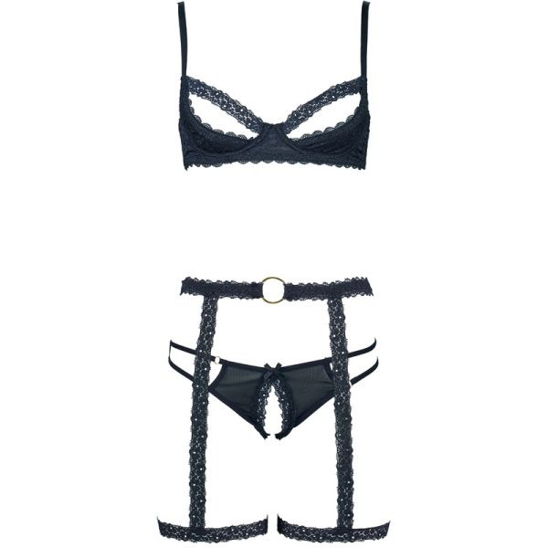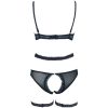 Black Lace Trim Padded Underwire Bra & Thong Garter Set for Women