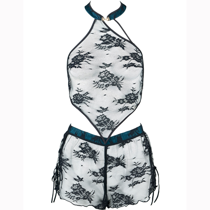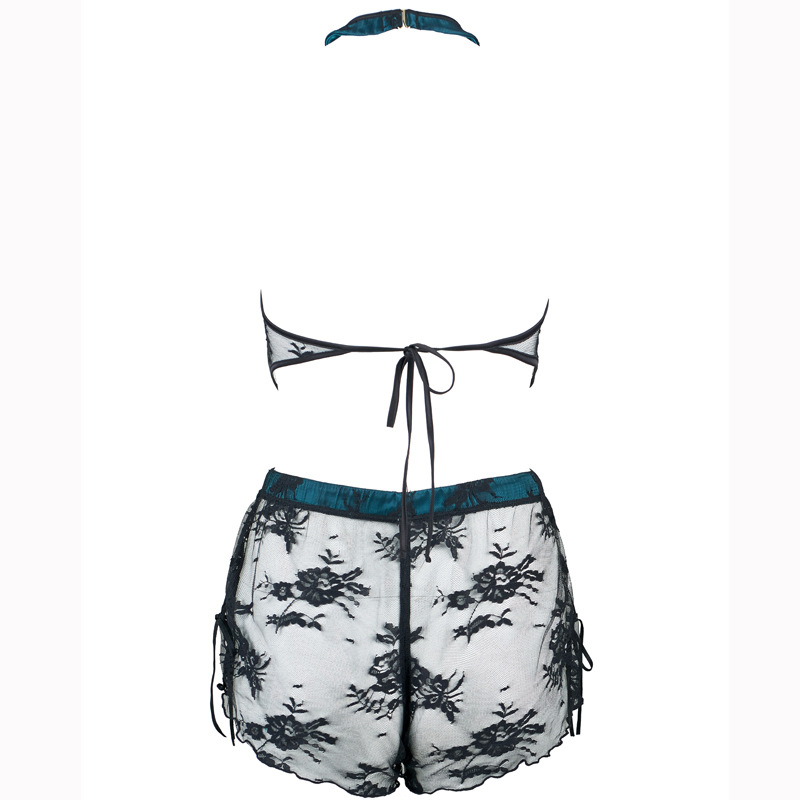 Women’s Temptation Lace Halter Backless Pajama Shorts Set