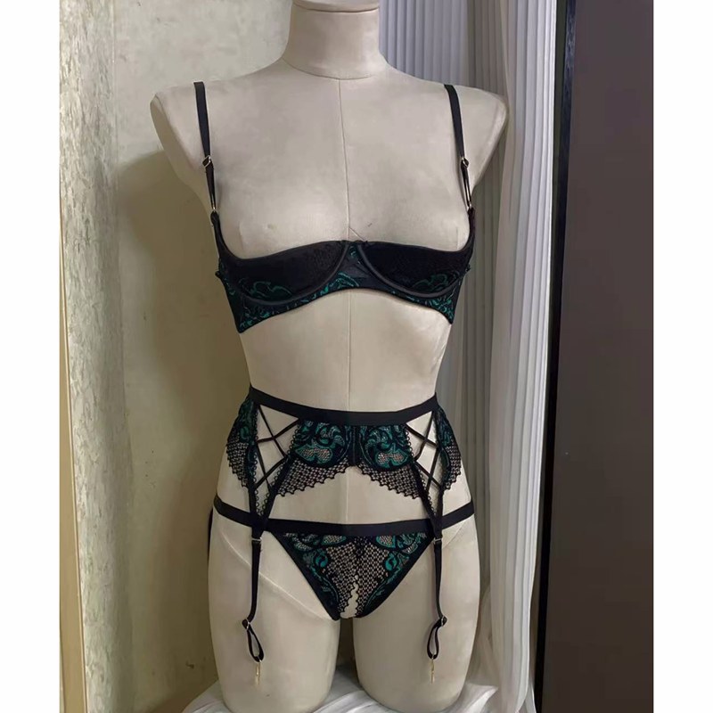 Sexy Lace Cross Strap Bralette & Panty Set for Women