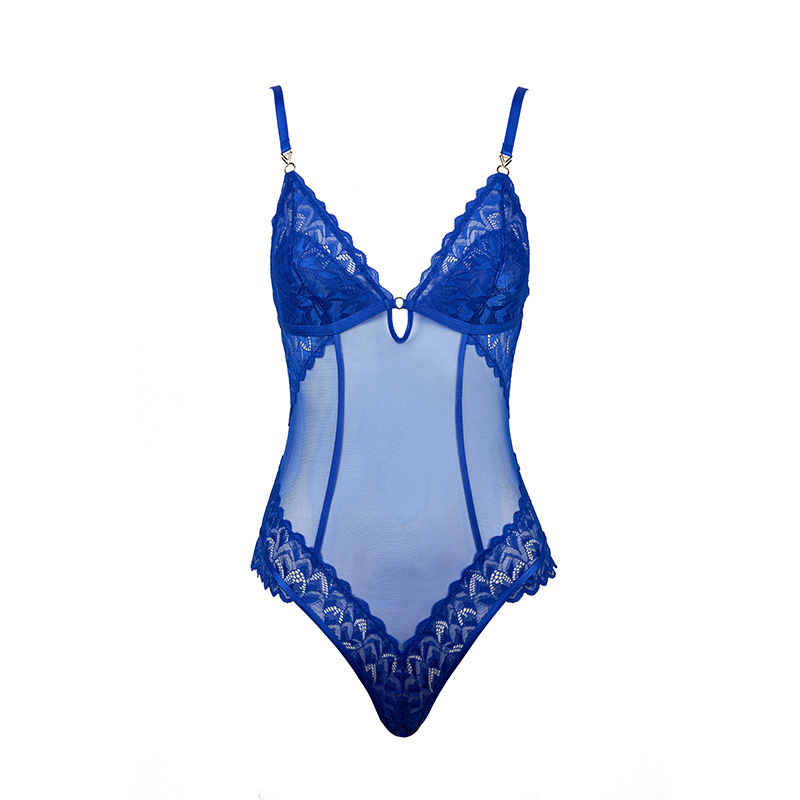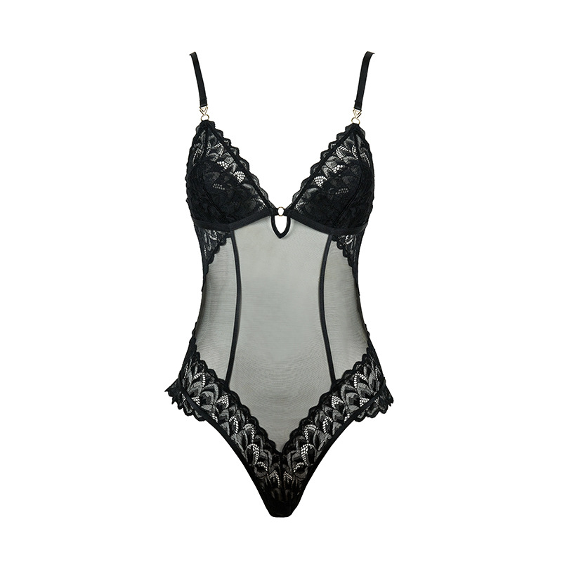 Sexy Black Lace Mesh French Cut Jumpsuit Bottoms with Open Buckle Cotton