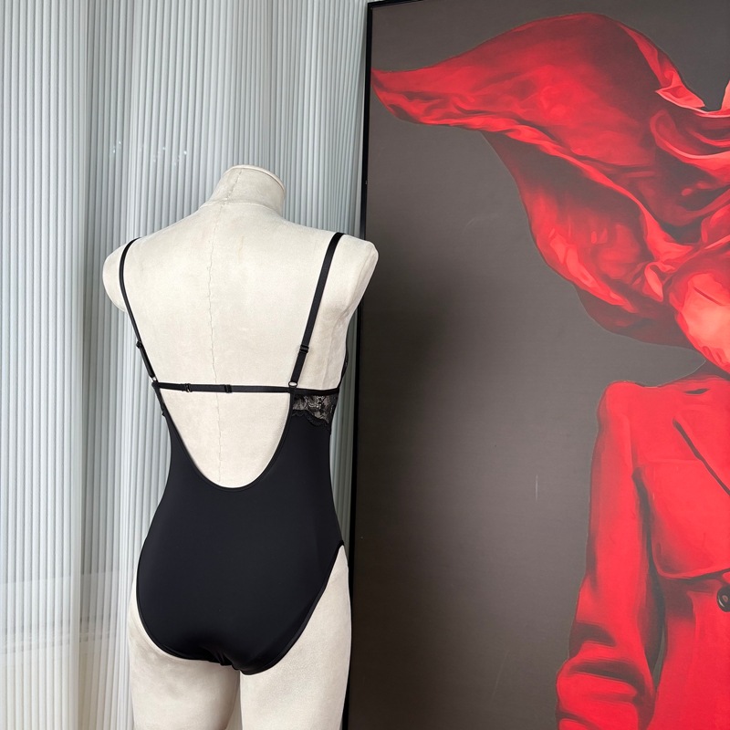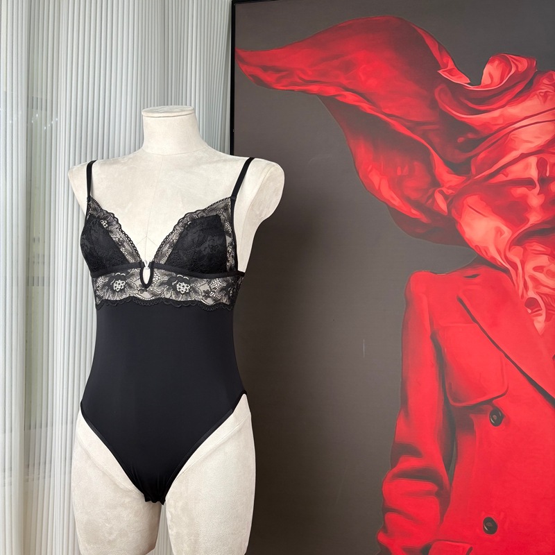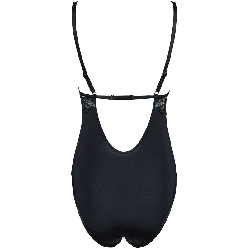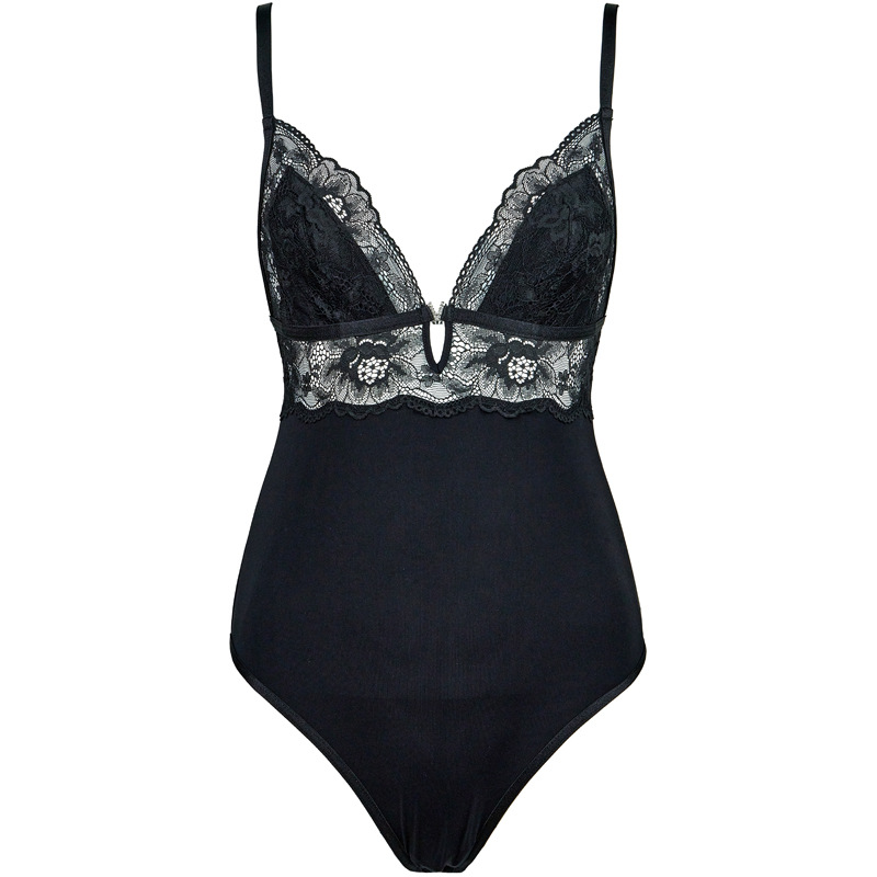 Women’s Black Lace V-Neck Cotton Crotch Bodysuit Jumpsuit