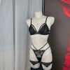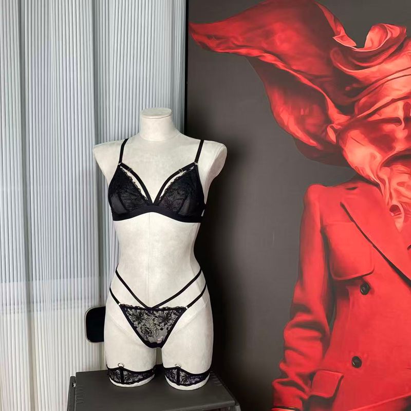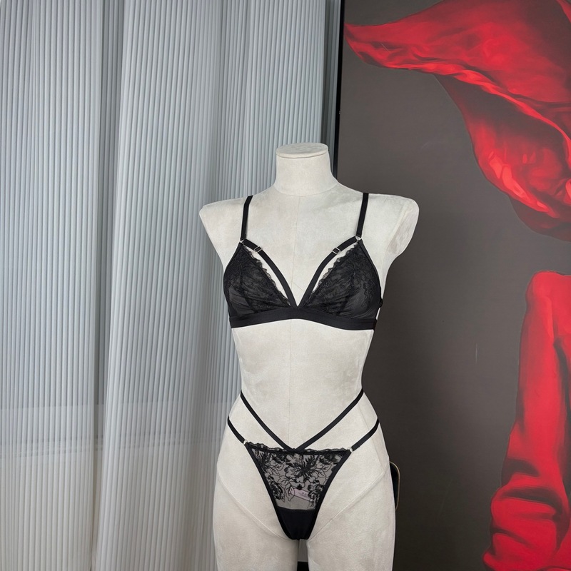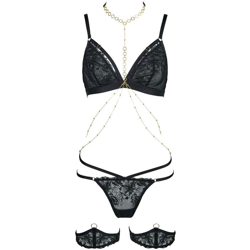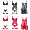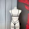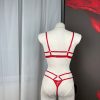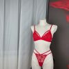 Red Embroidered Triangle Cup Mesh Lined Halter Body Chain Low Waist T-Pants
