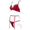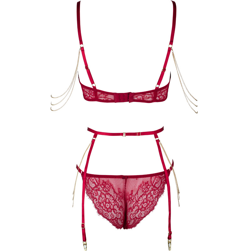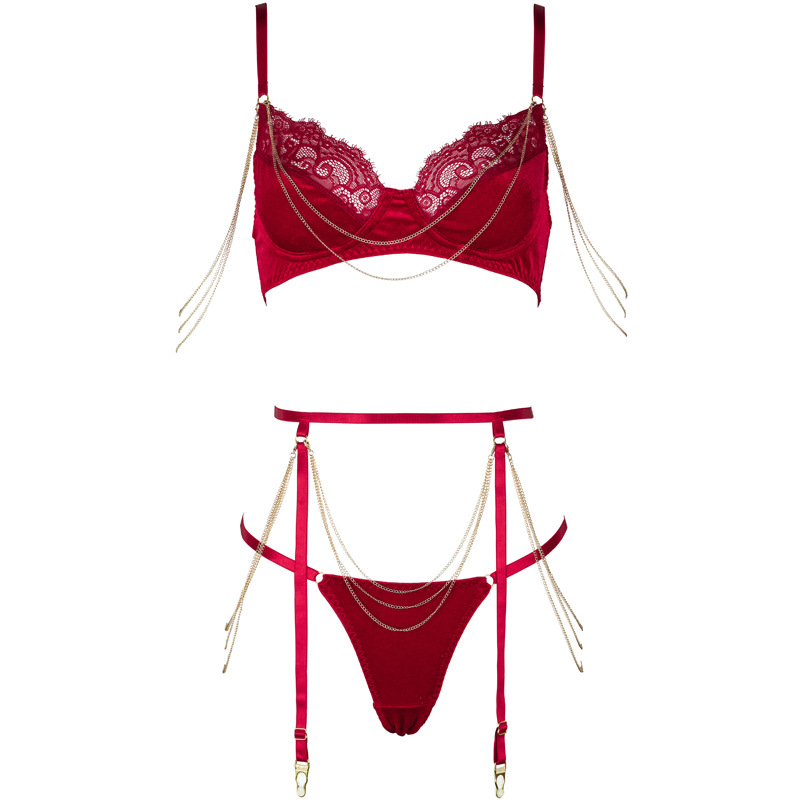 Luxury Velvet Lace French Bra & Briefs Set with Gold Chain Detail