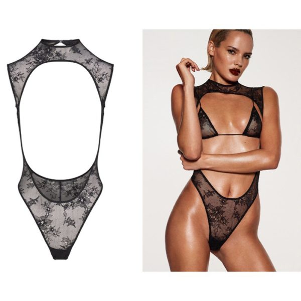 SKIMS Stretch Lace Jumpsuit Cotton Crotch Buckle Tight