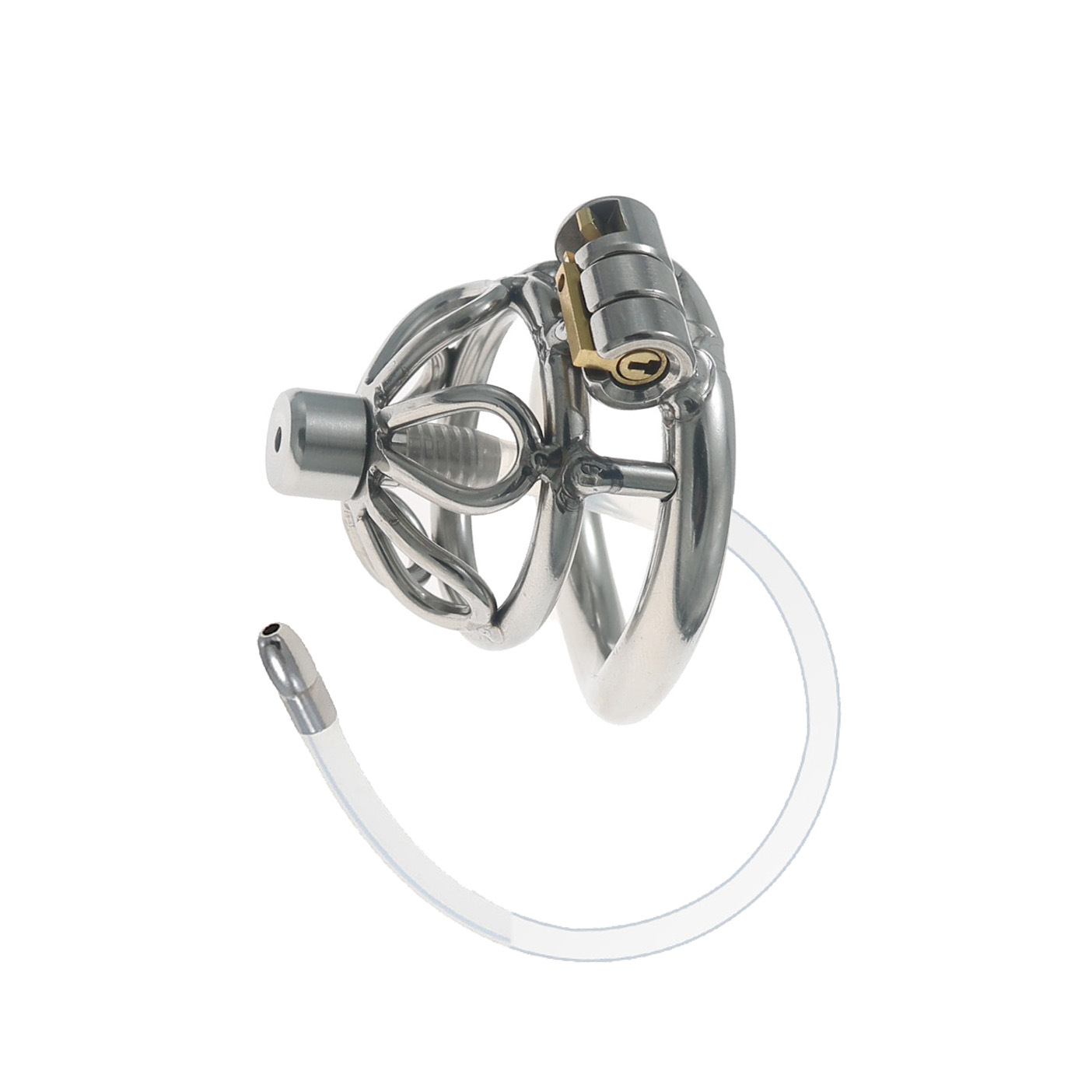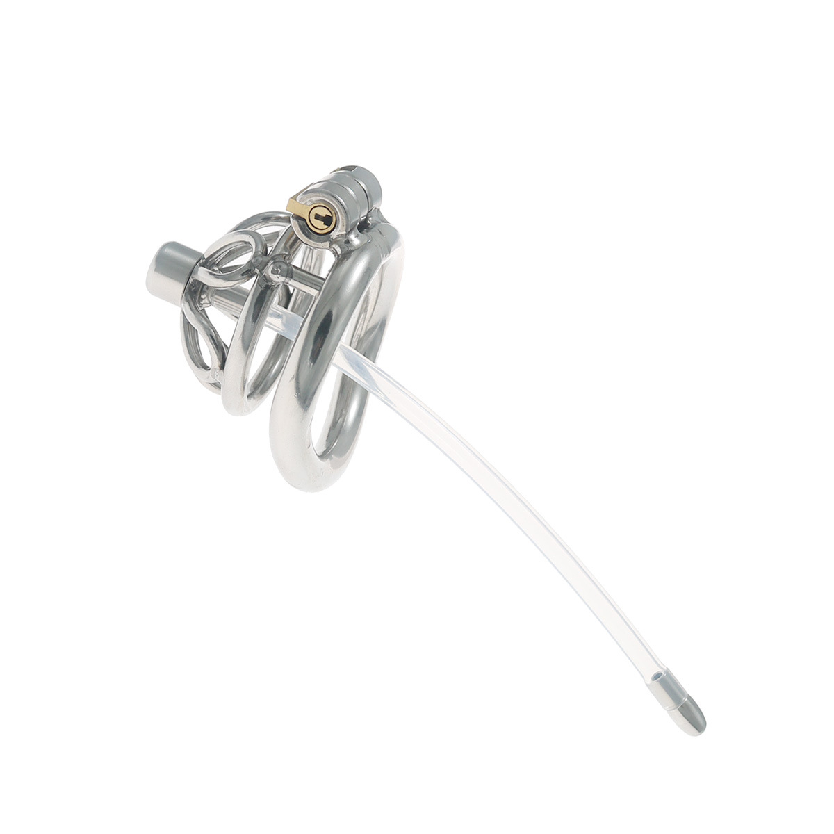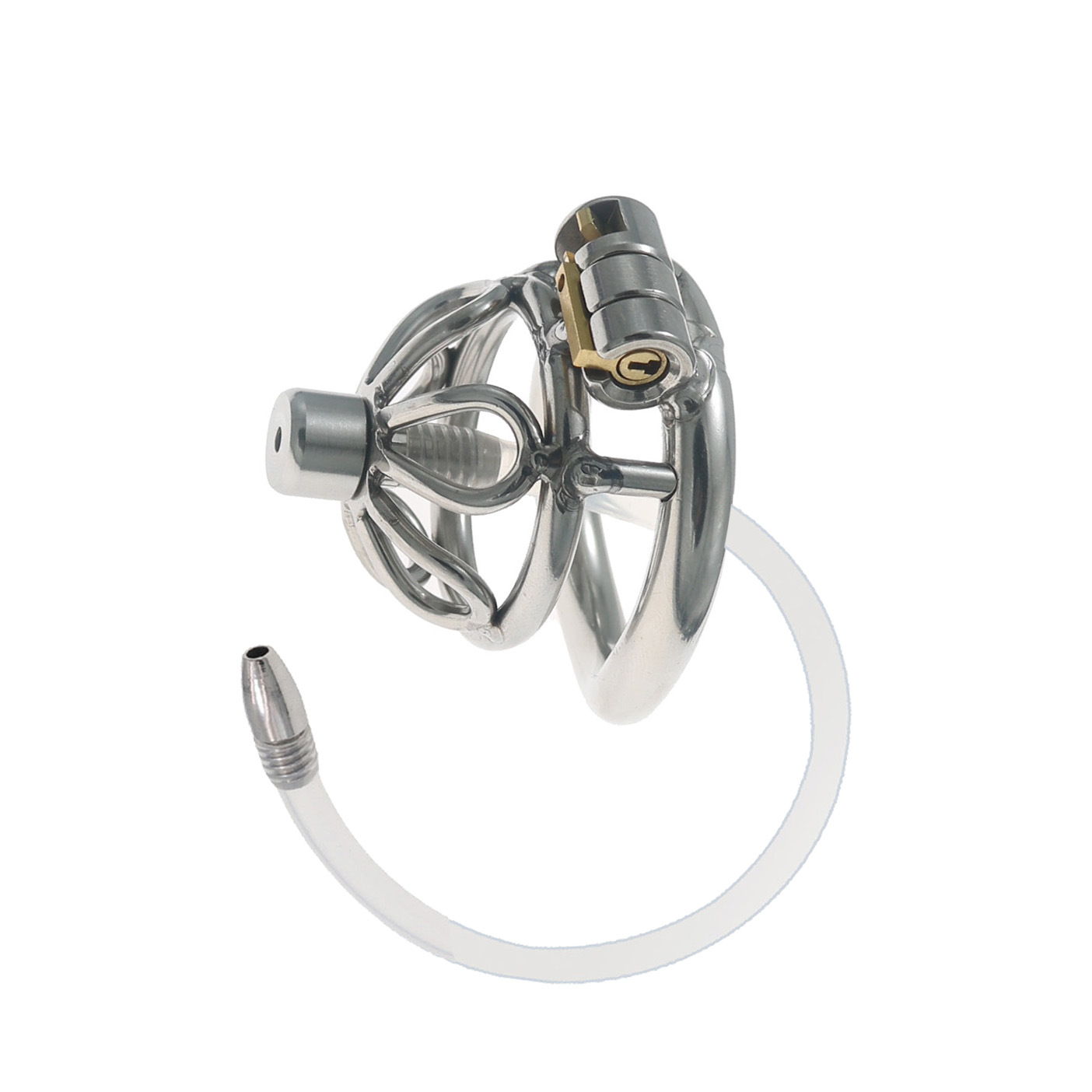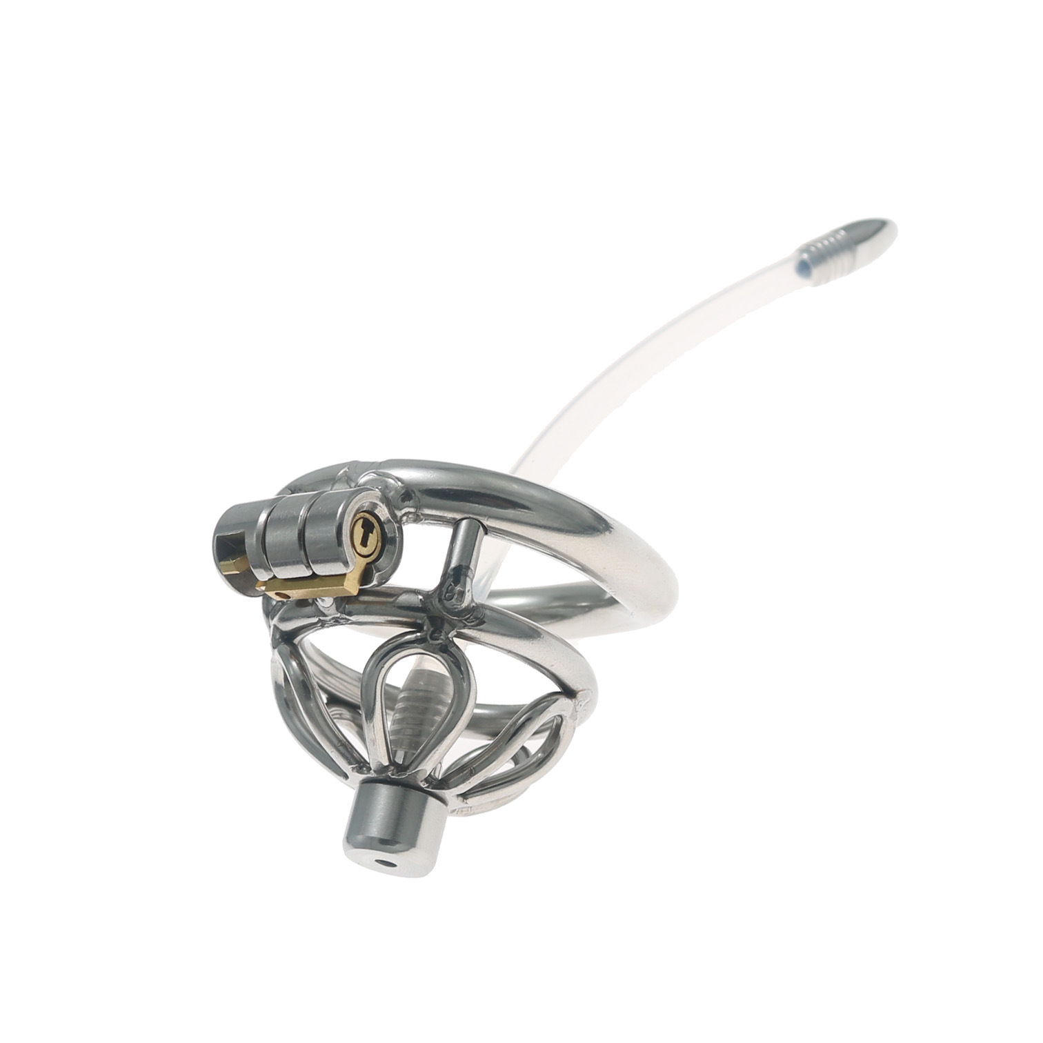 Fun Cb Chastity Device, Chastity Lock, Short Style with Extra Long Catheter, Lock for Outdoor Wear, Penis Cage, Stainless Steel Lock