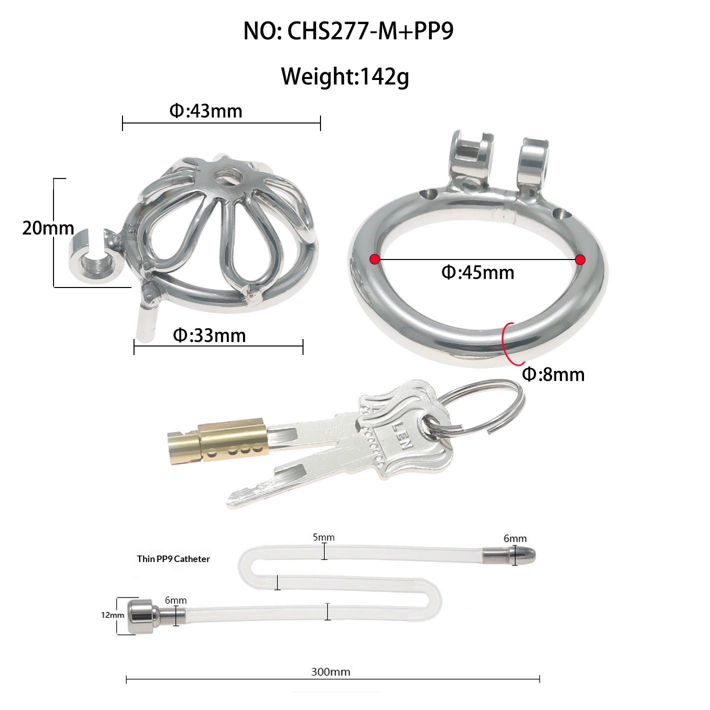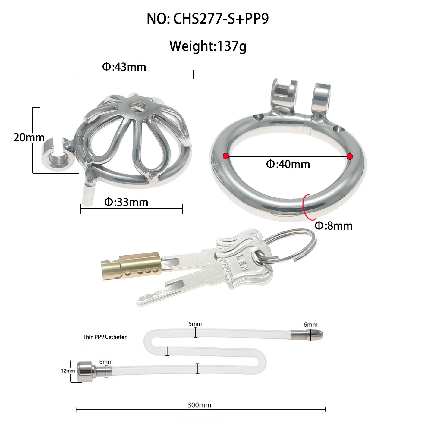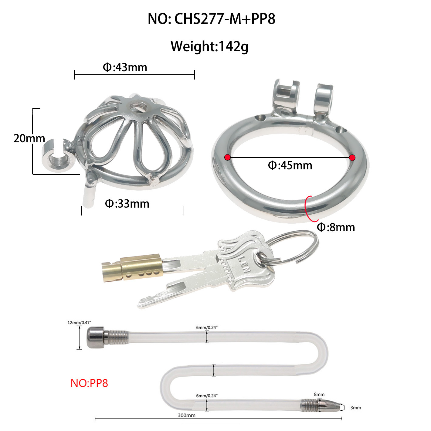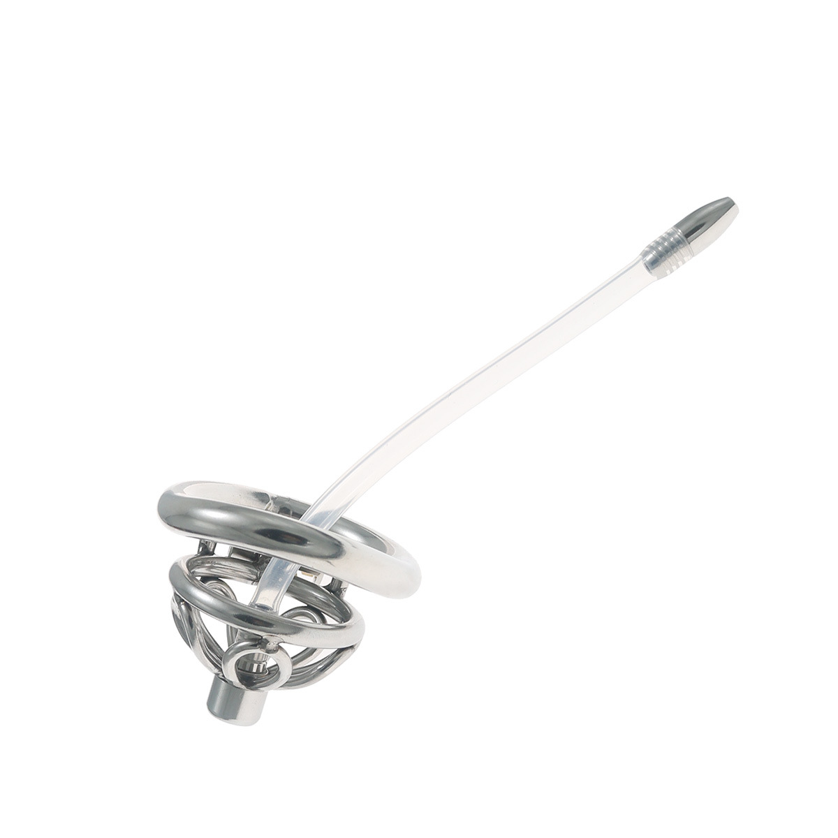 Fun Cb Chastity Device, Chastity Lock, Short Style with Extra Long Catheter, Lock for Outdoor Wear, Penis Cage, Stainless Steel Lock