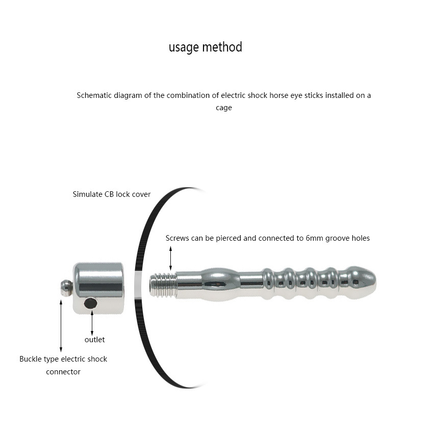 Fun stainless steel electric shock horse eye stick CB lock flat accessories for electric shock penis cage sex tool for adults