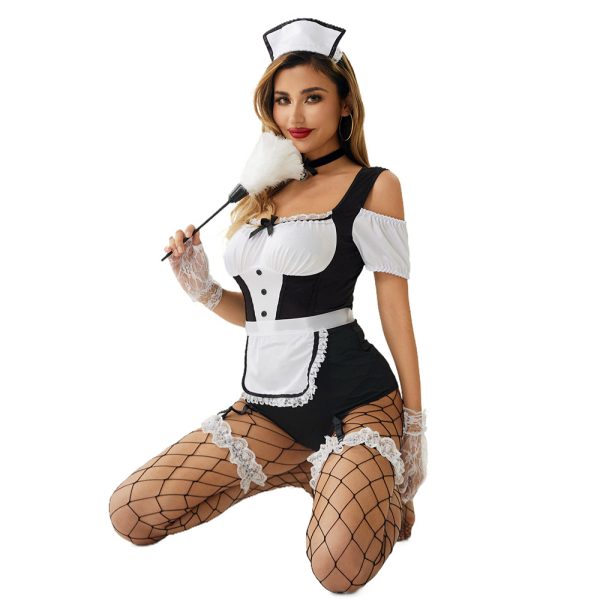 A sexy Halloween Maid Costume perfect for cosplay, parties, and performances. This European and American-inspired uniform offers a unique and alluring twist on the classic maid outfit, guaranteeing to turn heads and make a statement.